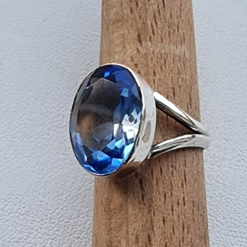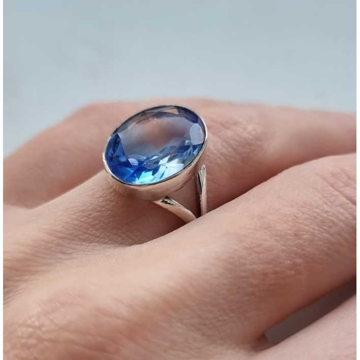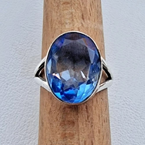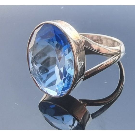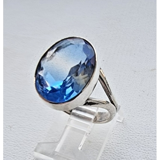 VINTAGE 925 STERLING SILVER OVAL16x12 mm. BLUE STONE STATEMENT RING SIZE 6.75 AT