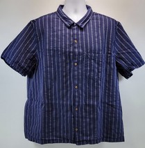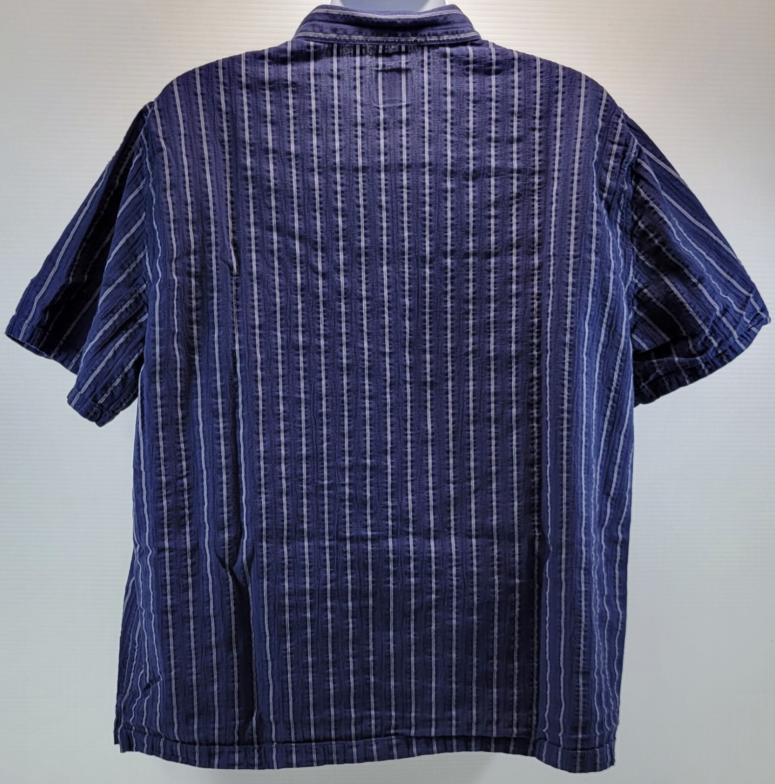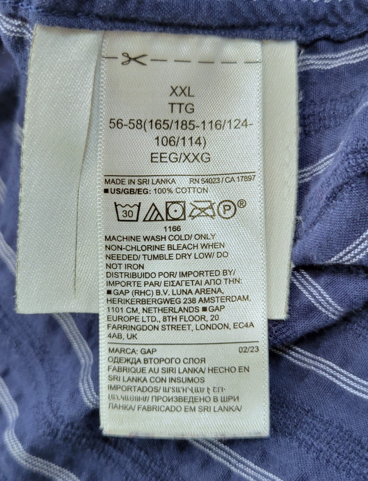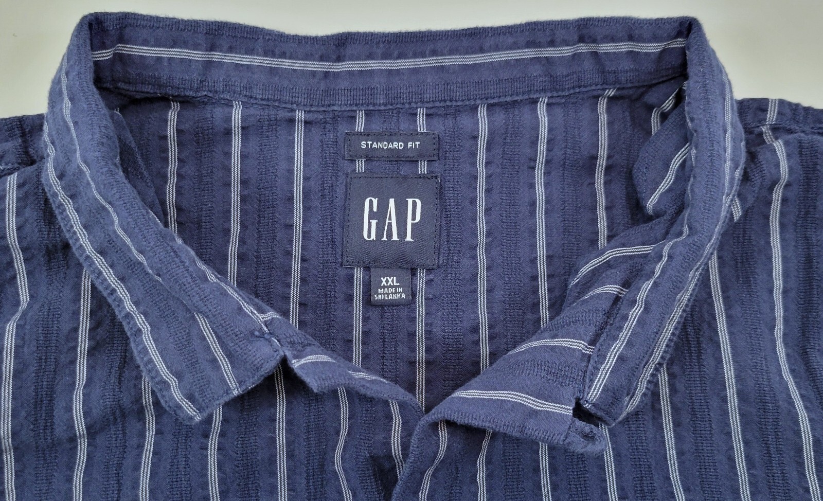 A) Gap Men Button Down Navy Blue Striped Standard Fit Ripple Cotton Shirt XXL