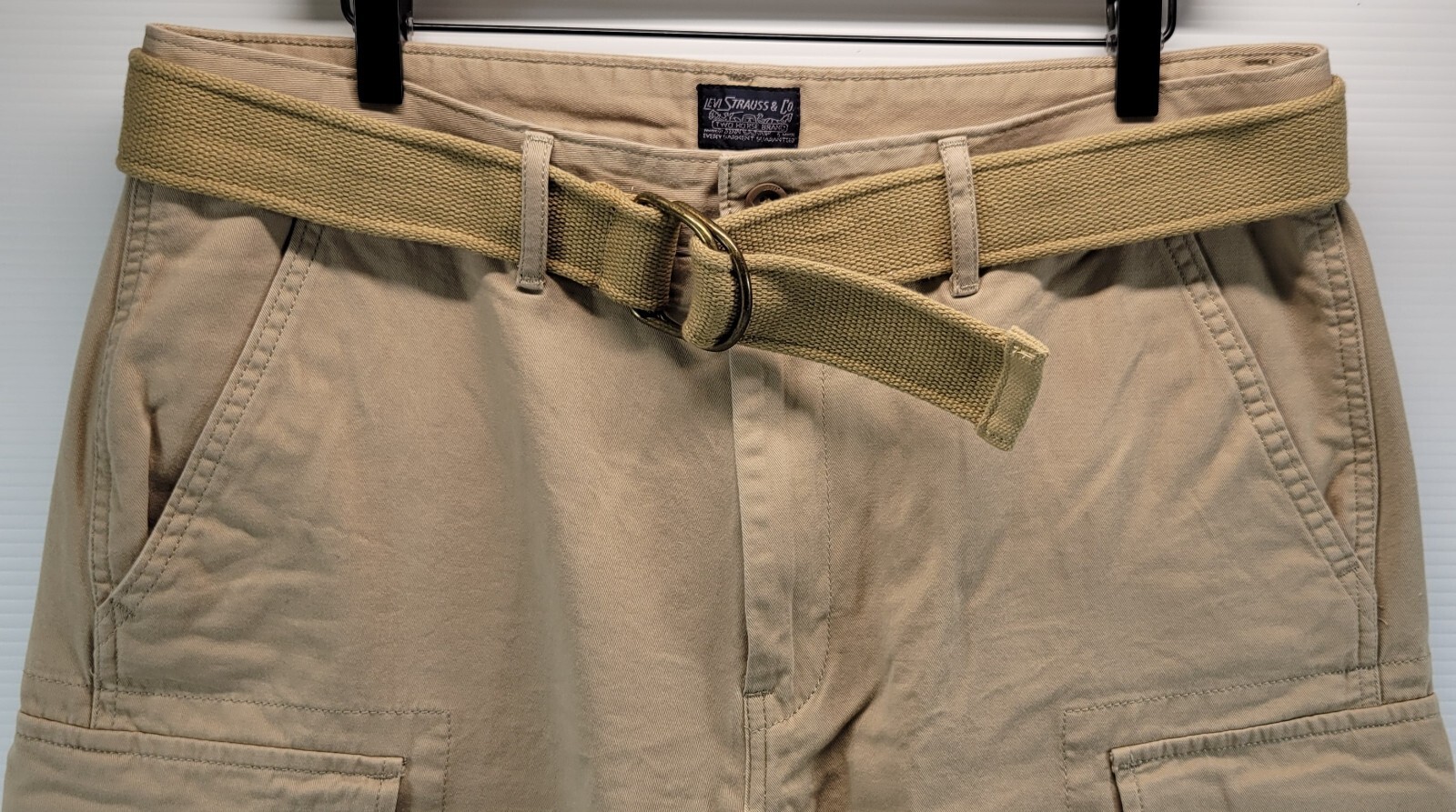 D) Levi's Men Cotton Cargo Shorts with Belt Relaxed Fit Size 34 Tan