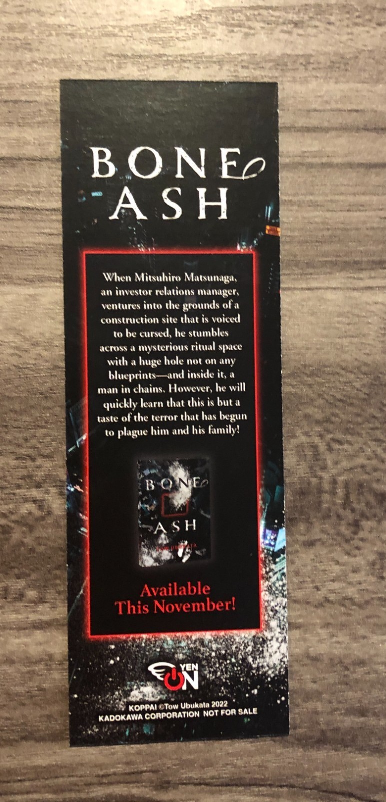 BONE ASH Tow Ubukata Novel BOOKMARK NYCC Comic Con Horror Yen Press