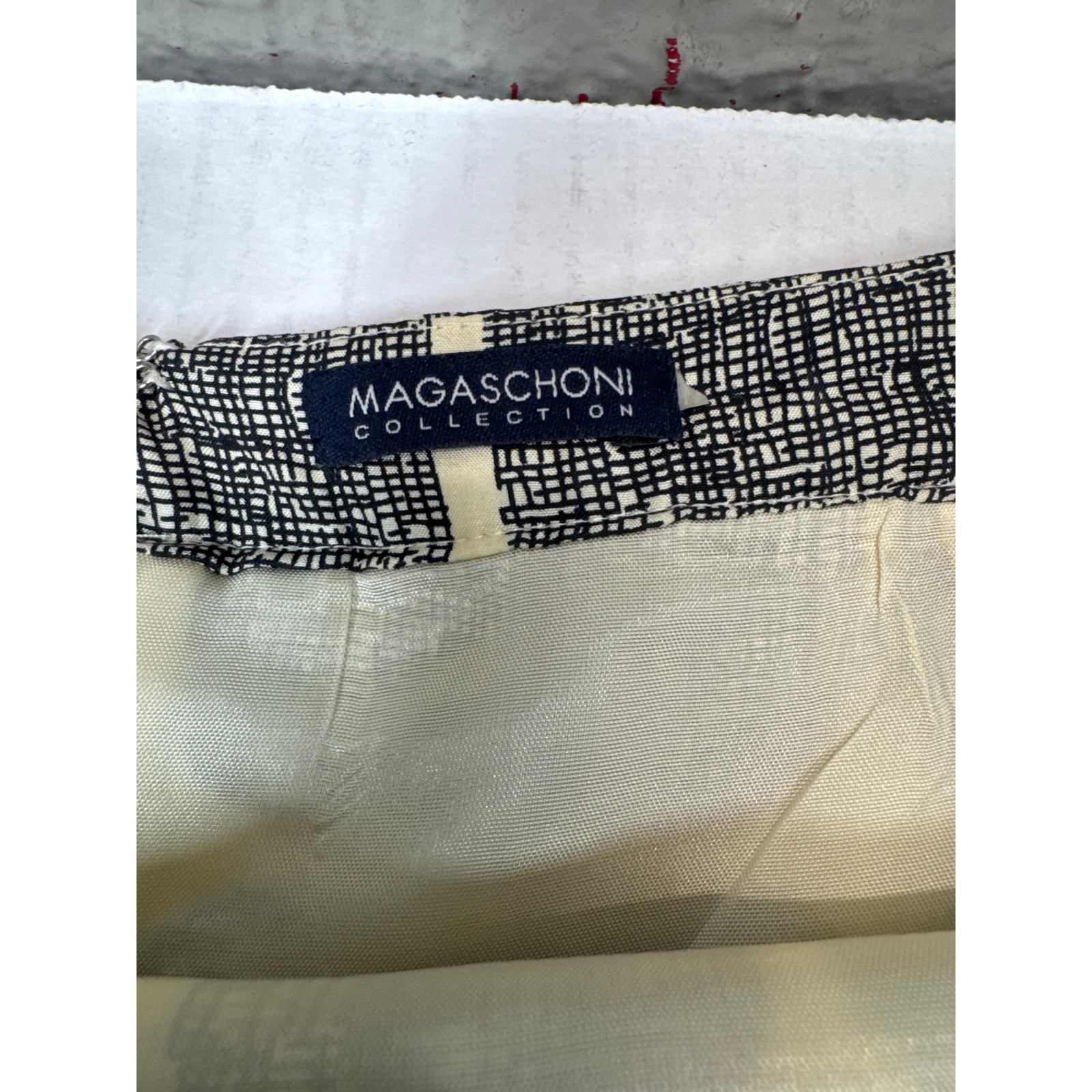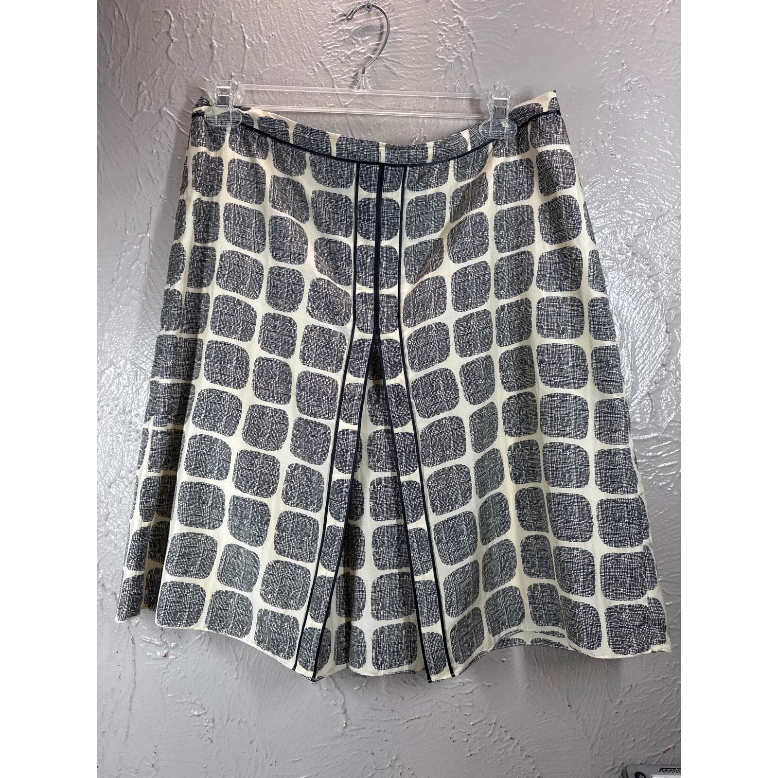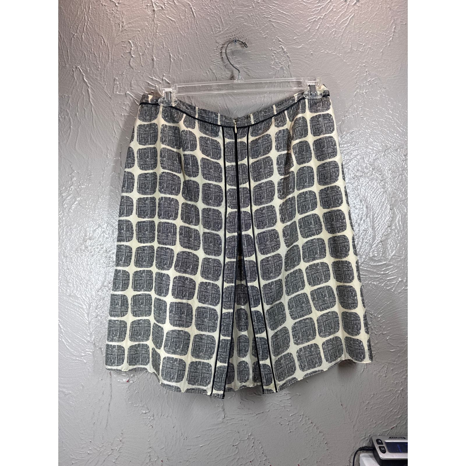 Magaschoni Collection Cream Black Square Pattern Silk A Line Skirt Size XS/S