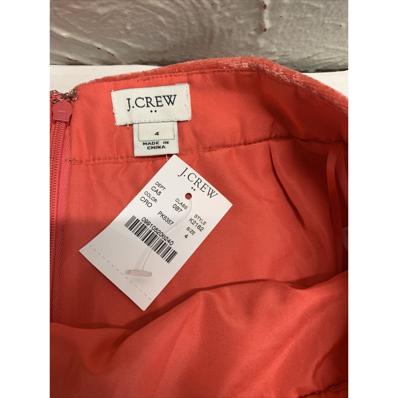 J Crew Coral Velvet Mini Straight Skirt Red Orange Salmon Zip Up Size 4 NWT