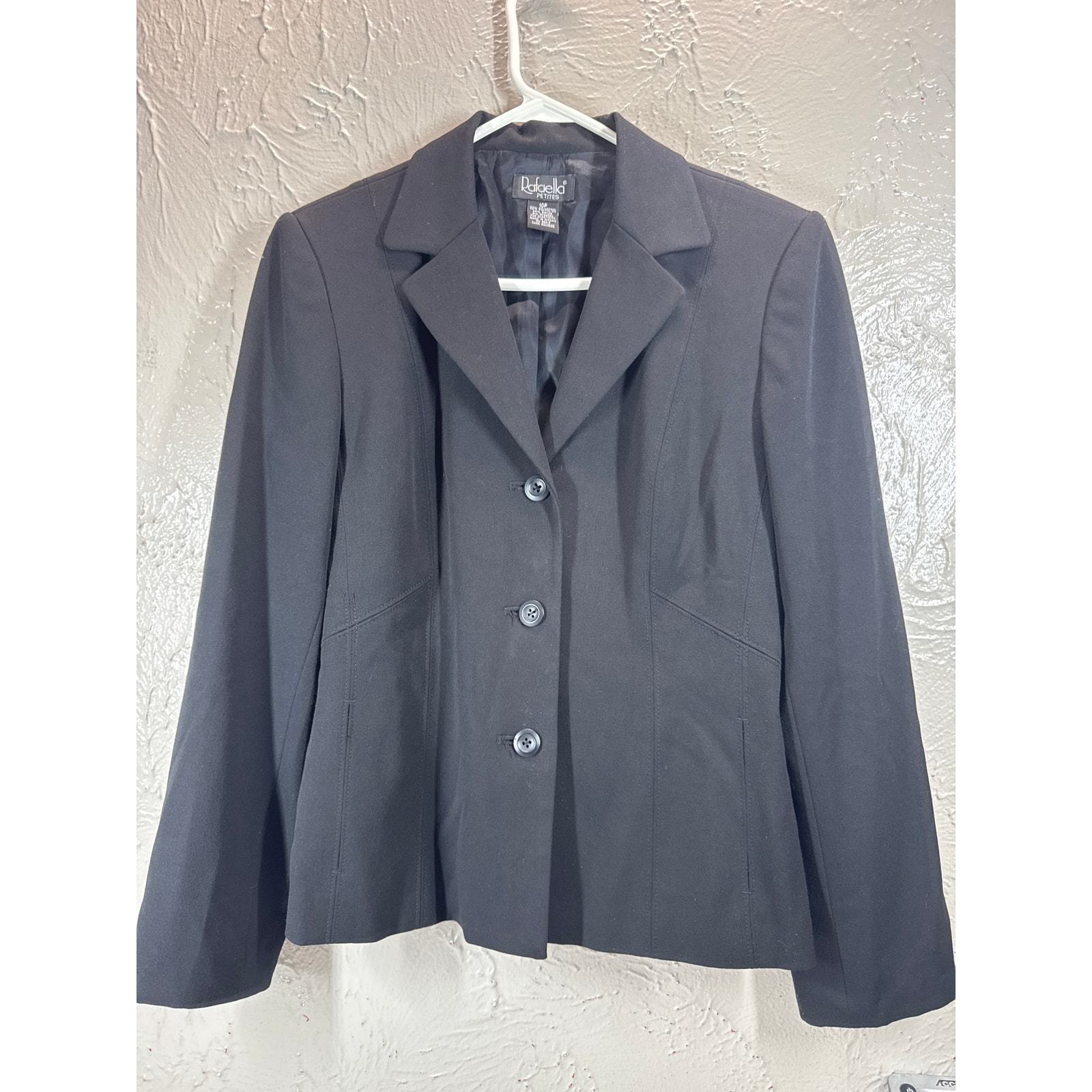 Rafaella Petite Black Poly/Rayon Long Sleeve Lined 3 Button Blazer Size 10P