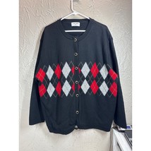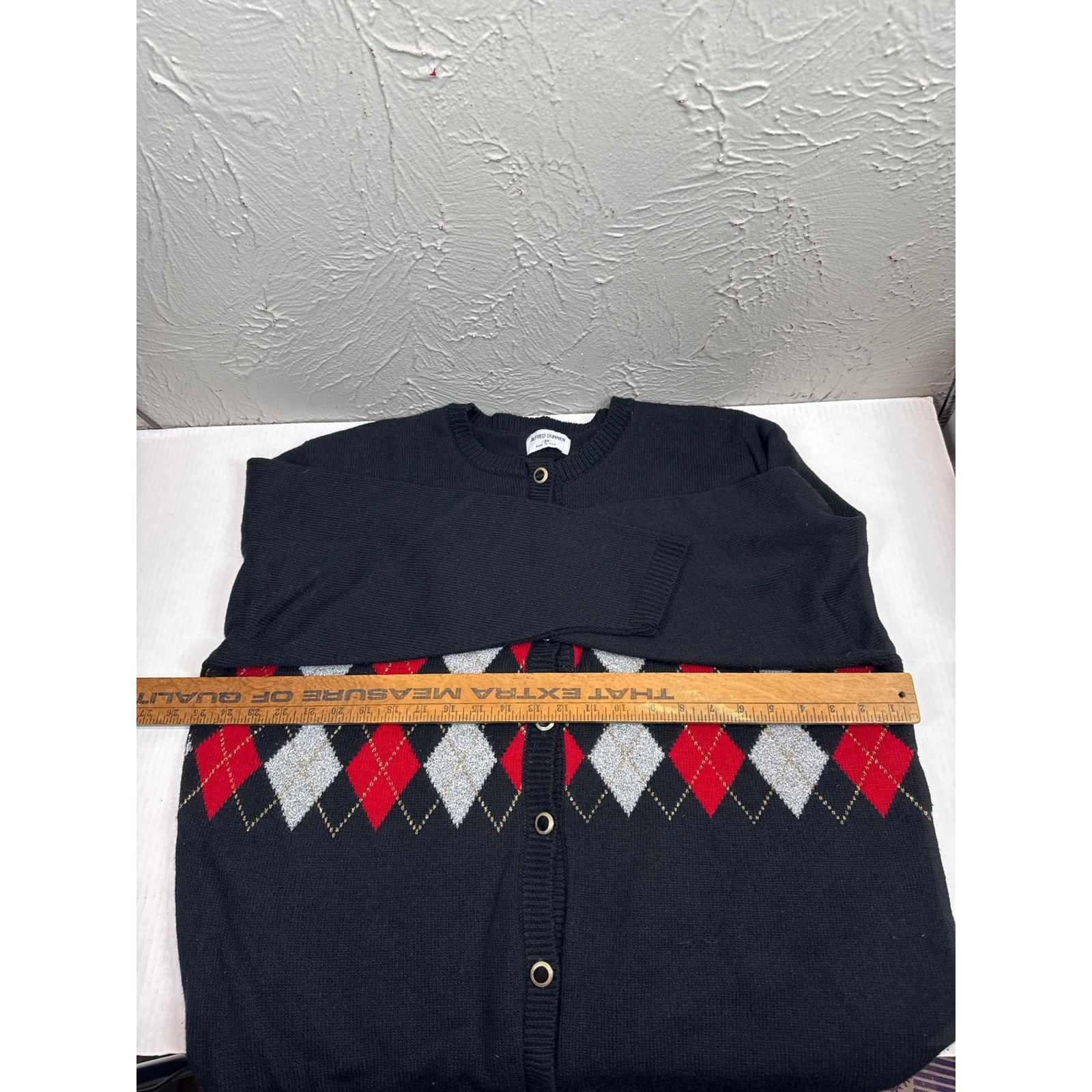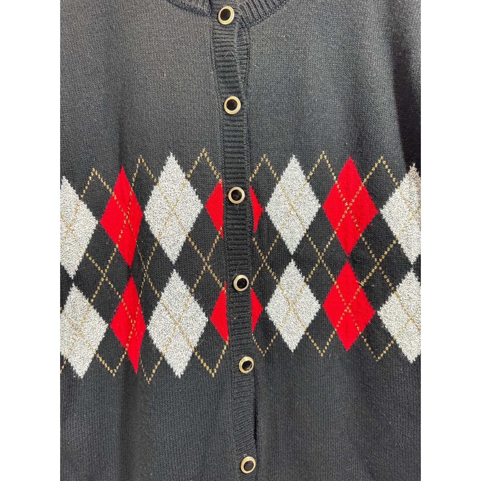 Alfred Dunner Black & Red Argyle Sweater Cardigan Vintage Womens Plus Size 3X
