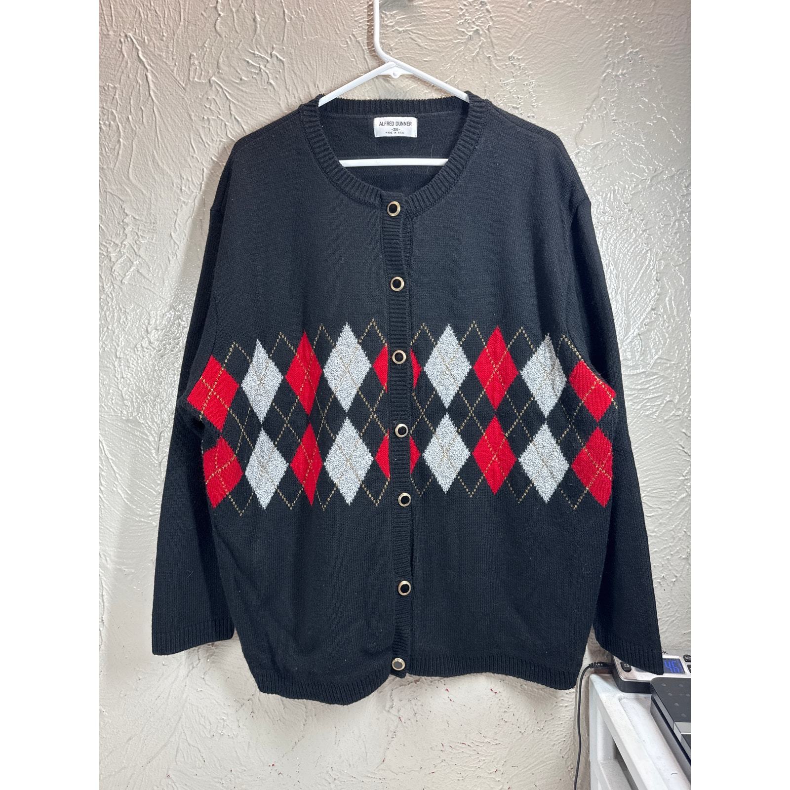 Alfred Dunner Black Red Argyle Sweater Cardigan Vintage Womens Plus Size 3X