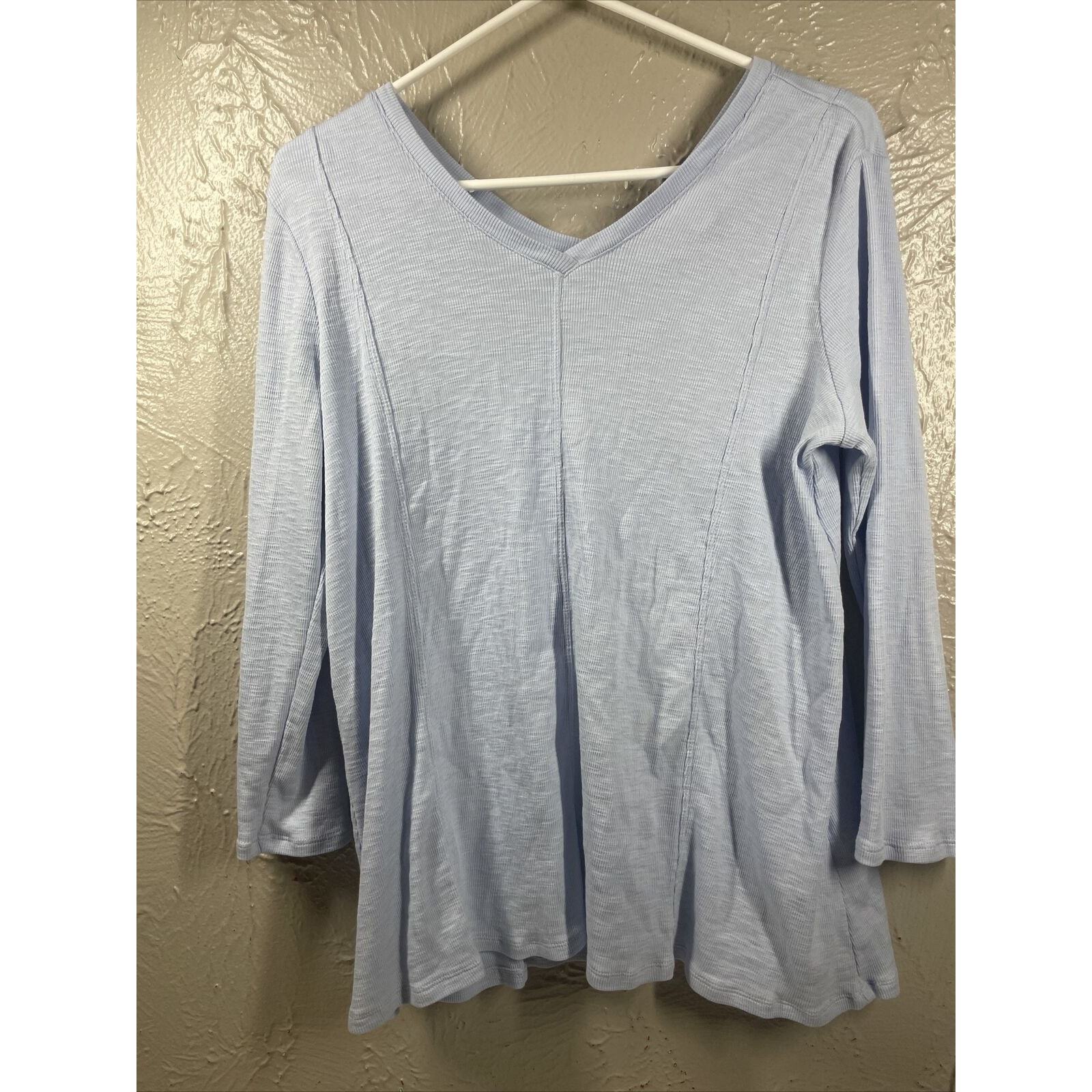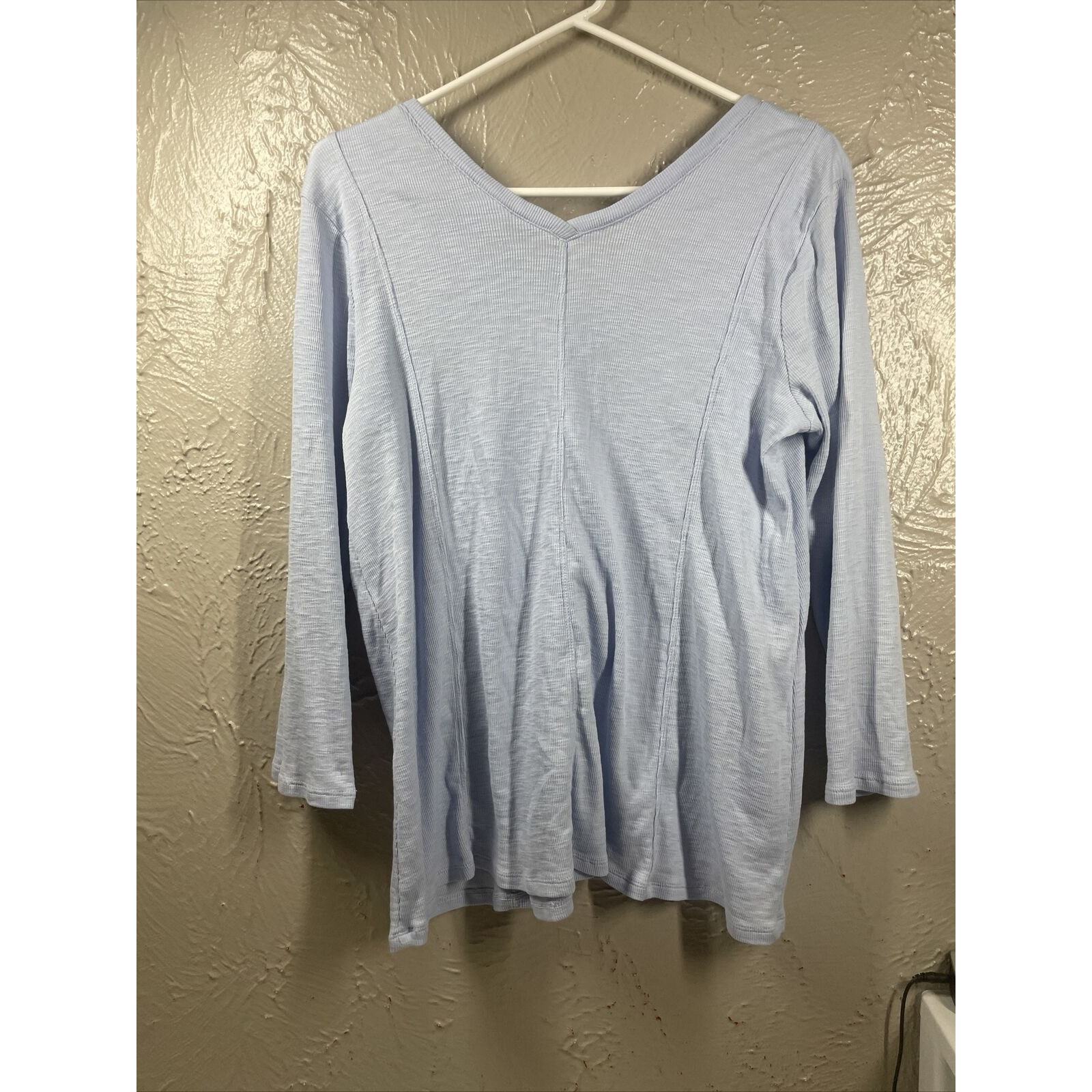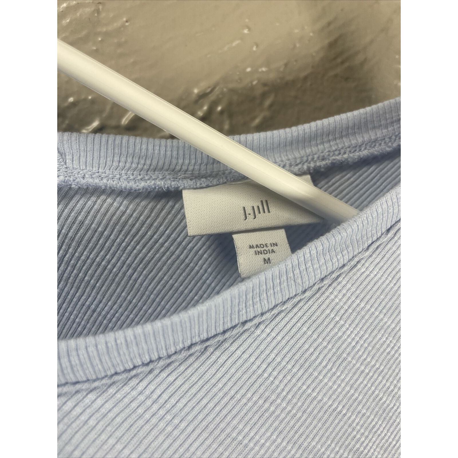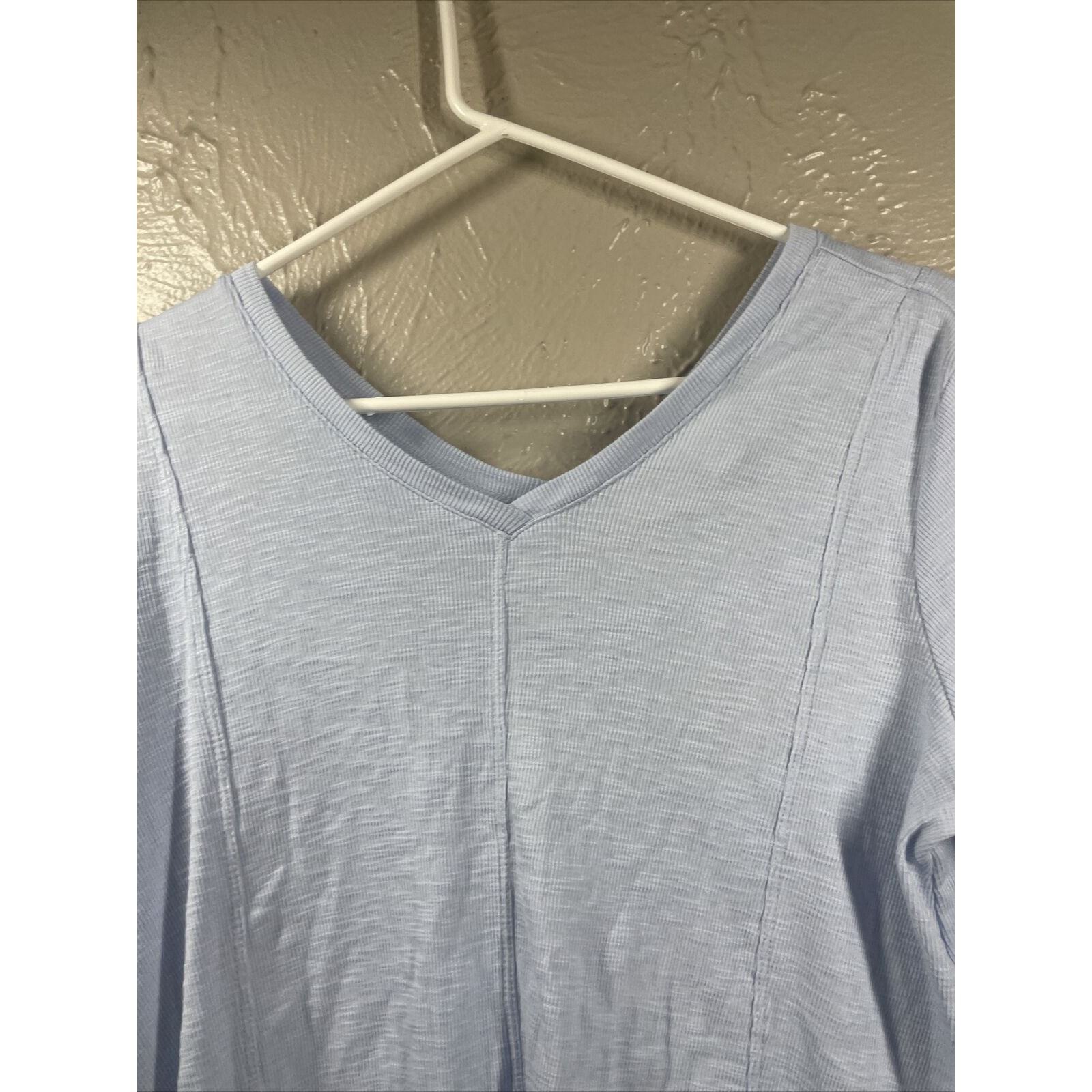 J Jill Women's Light Blue Ribbed V Neck Slub Slouchy Top V Back Pima Size Medium