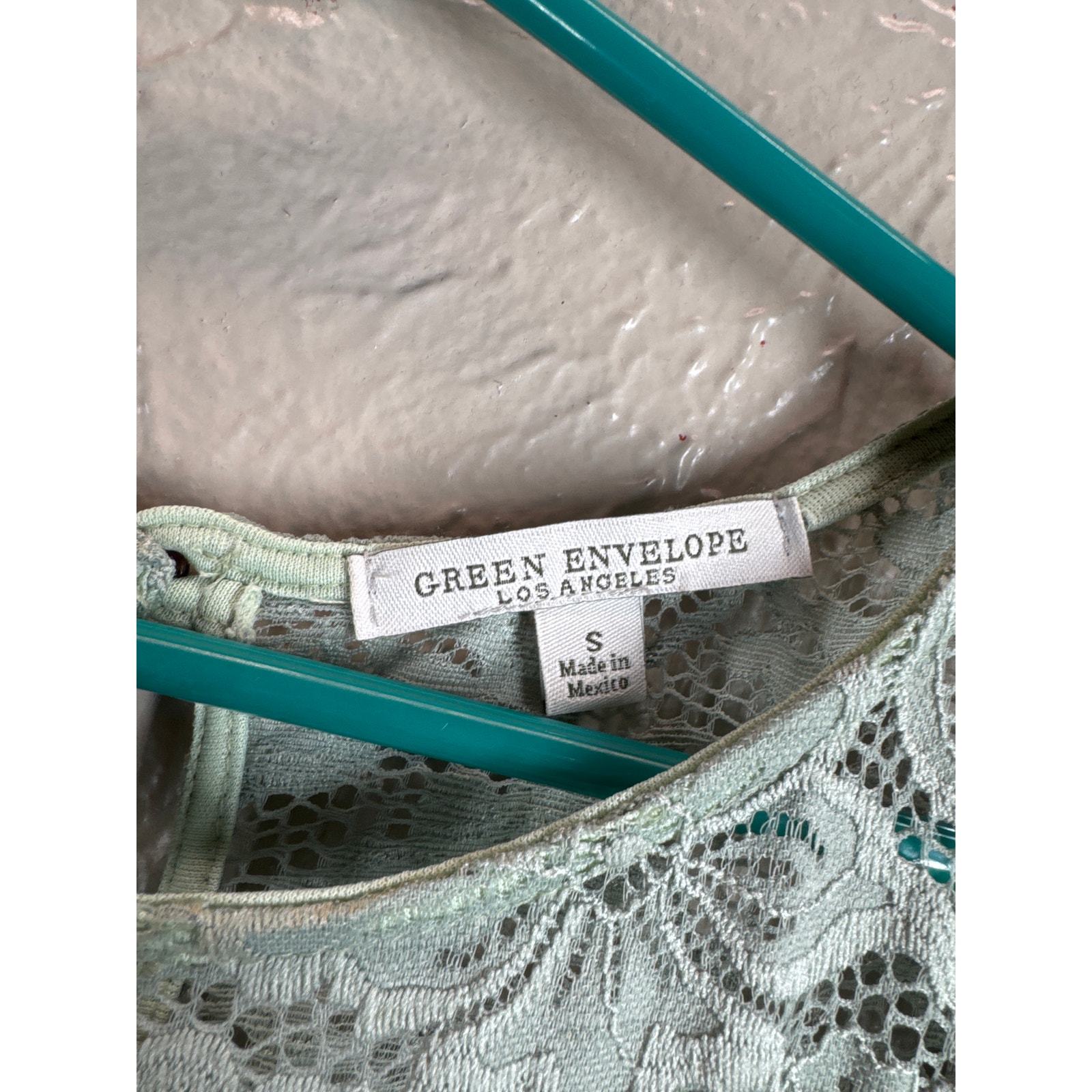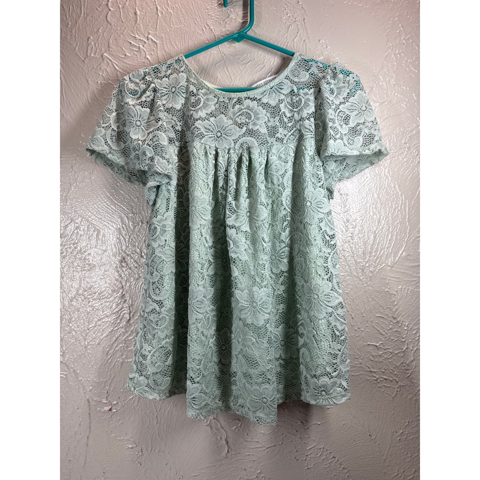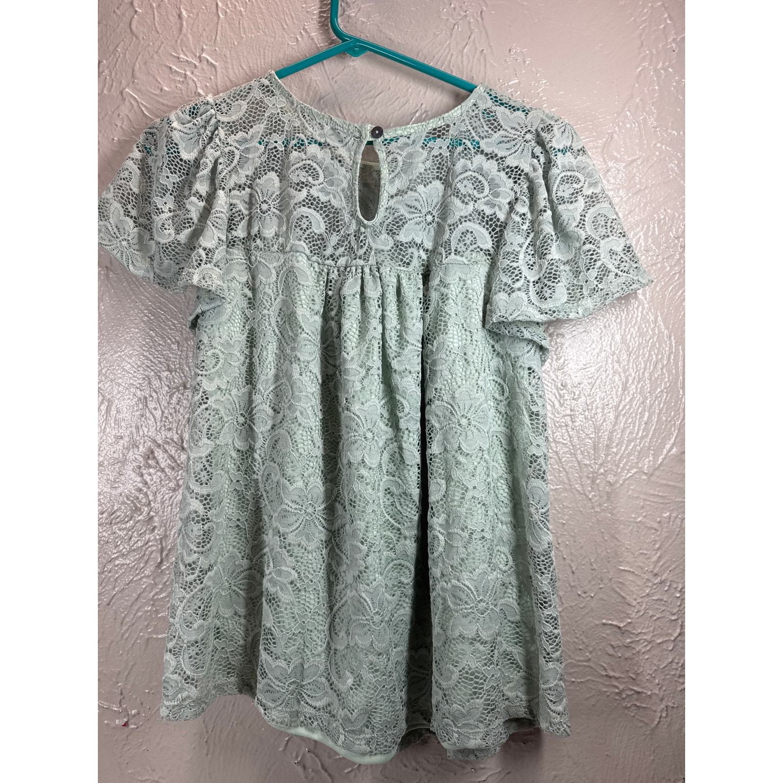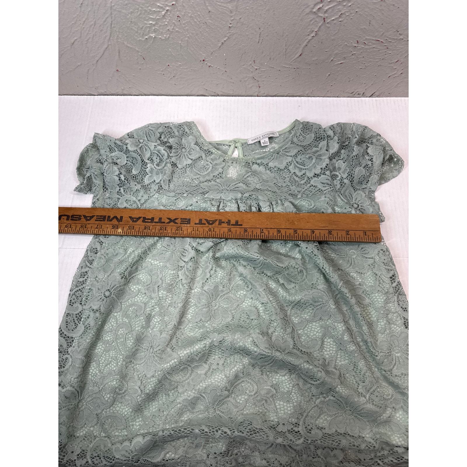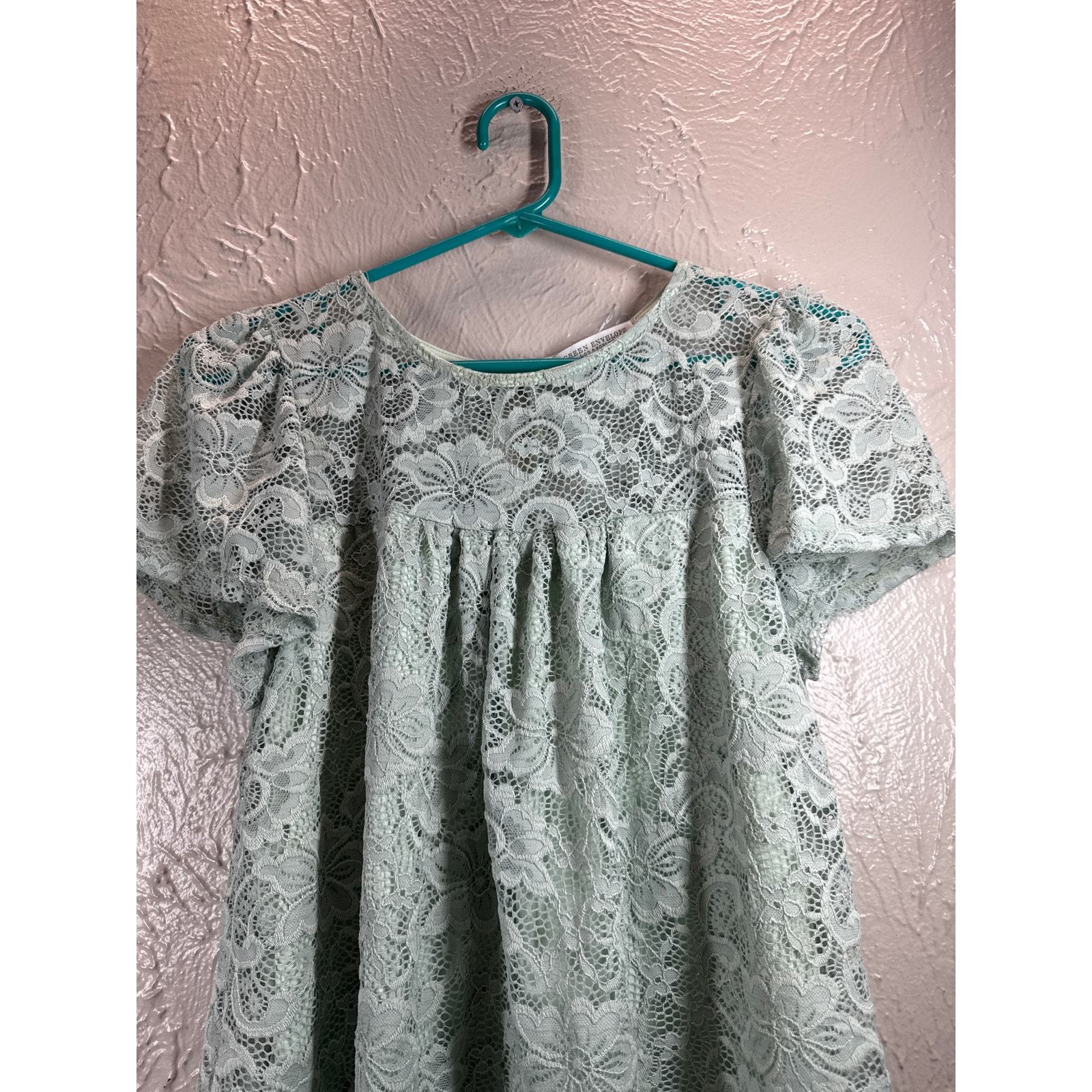 Green Envelope Blouse Womens Green Lace Button Short Sleeve Round Neck Small