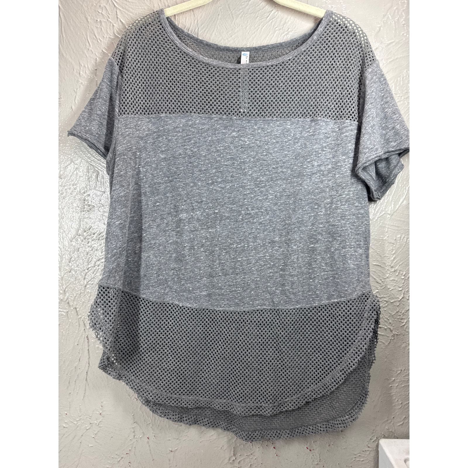 Free People Movement Hourglass Gray Mesh Panel Short Sleeve T-shirt Top Small