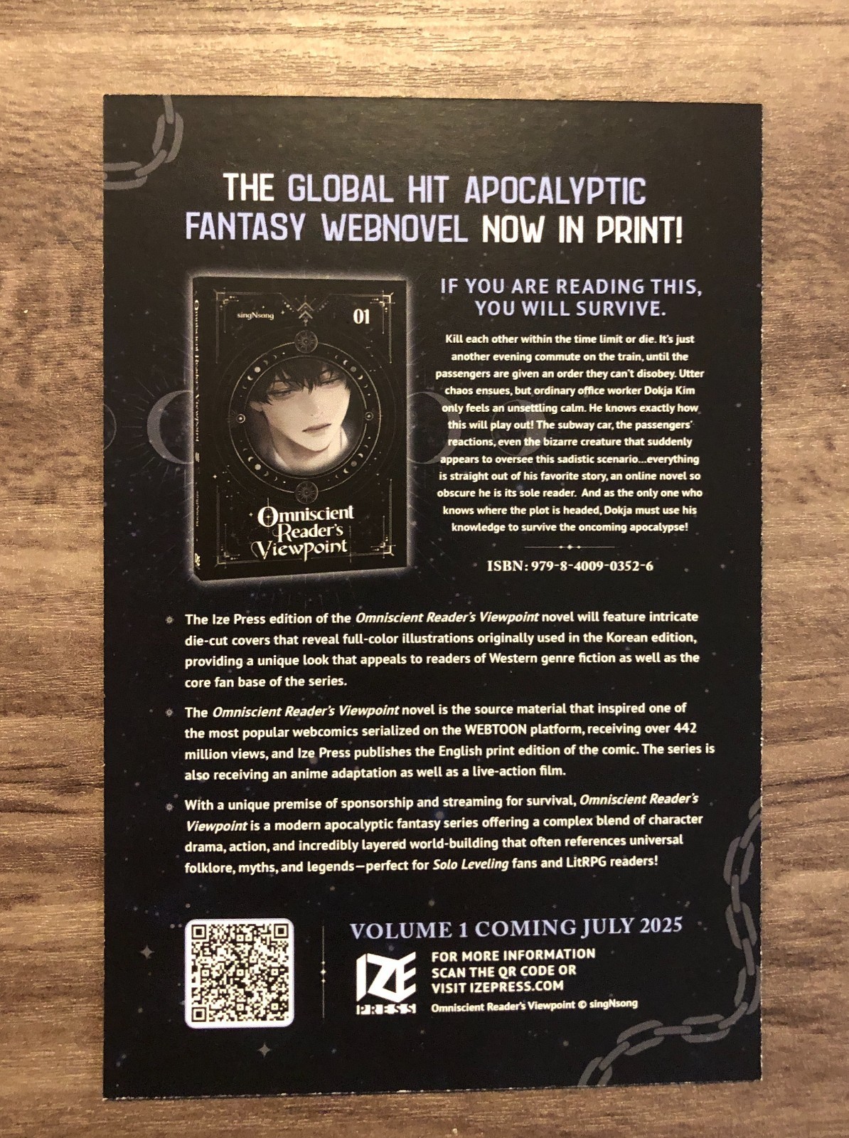 OMNISCIENT READER'S VIEWPOINT 4 X 6 Promo Card NYCC Comic Con 2025 MANGA IZE