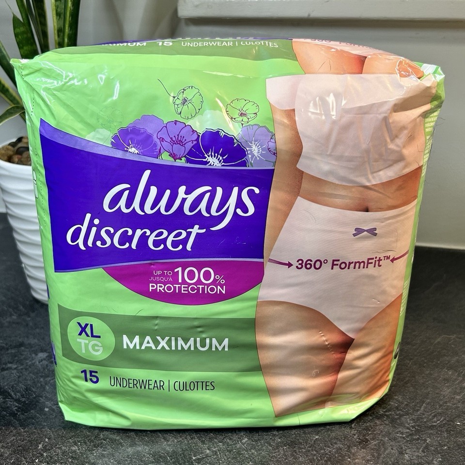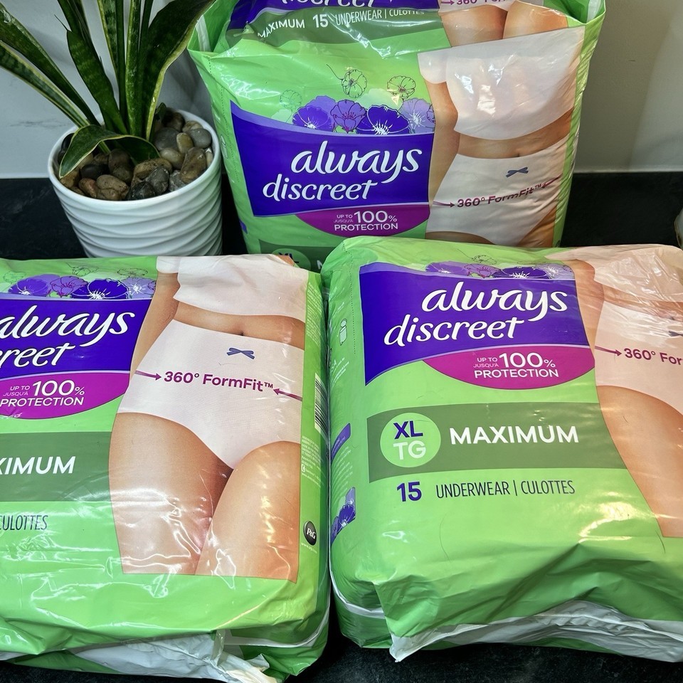 3- Always Discreet Adult Incontinence Postpartum Underwear For Women XL.