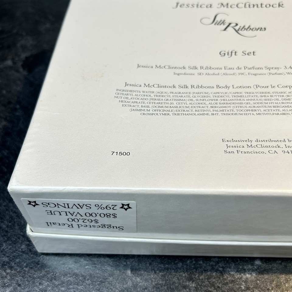 NEW Jessica McClintock Silk Ribbons 3.4 oz EDP & 5 oz Body Lotion Gift Set
