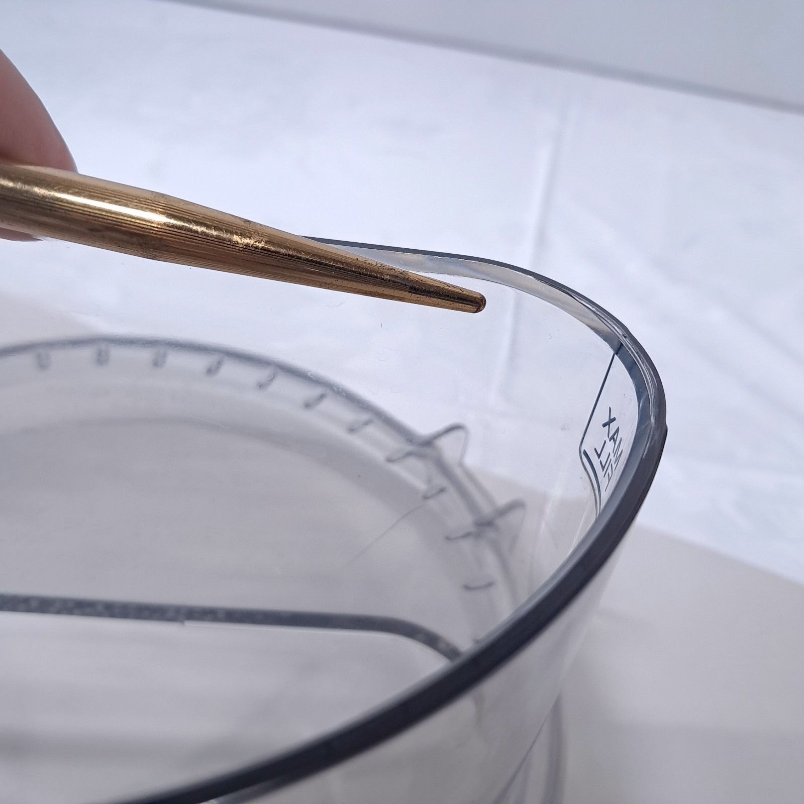 Some hairline cracks as shown. Clear.