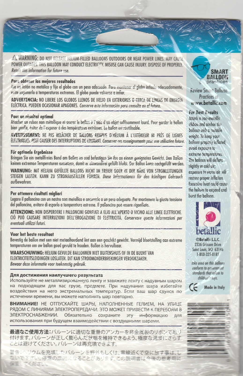 CHOKING HAZARD ? Children under 8 yrs. can choke or suffocate on uninflated or broken balloons. Adult supervision required. Keep uninflated balloons from children. Discard broken balloons at once.
