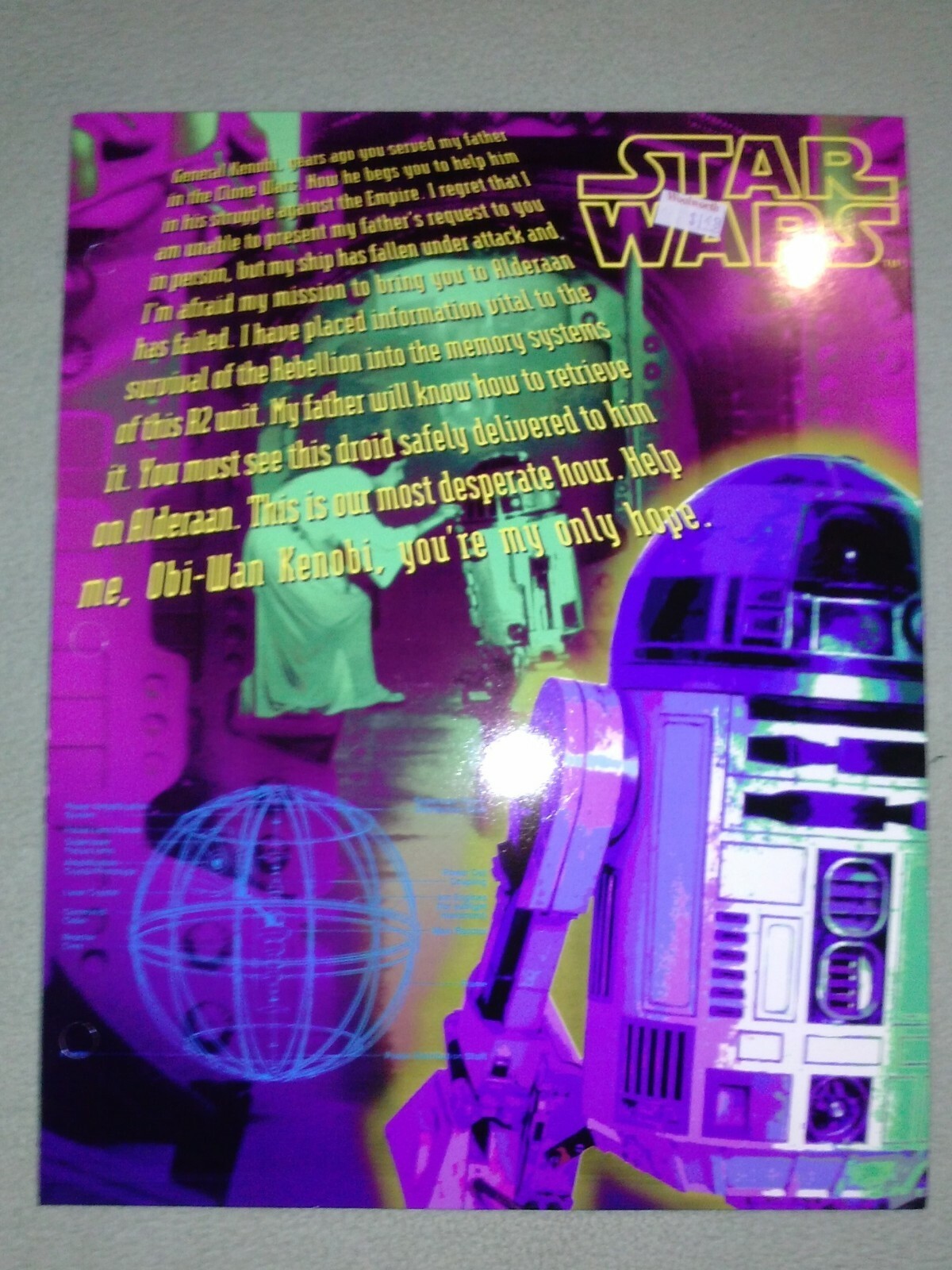 Star wars Portfolio Folders(unpunched) ~ 2 R2-D2 & C3P0 ~ w/1996 Woolworth tag