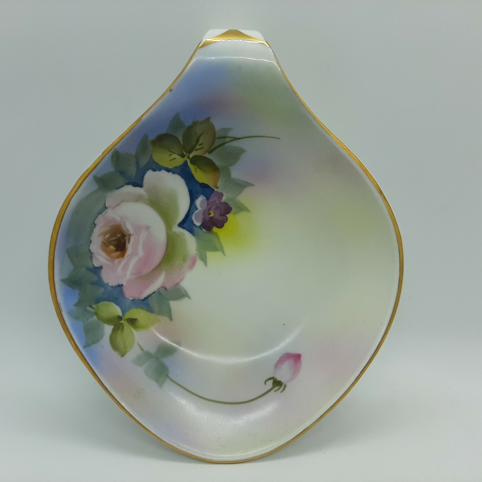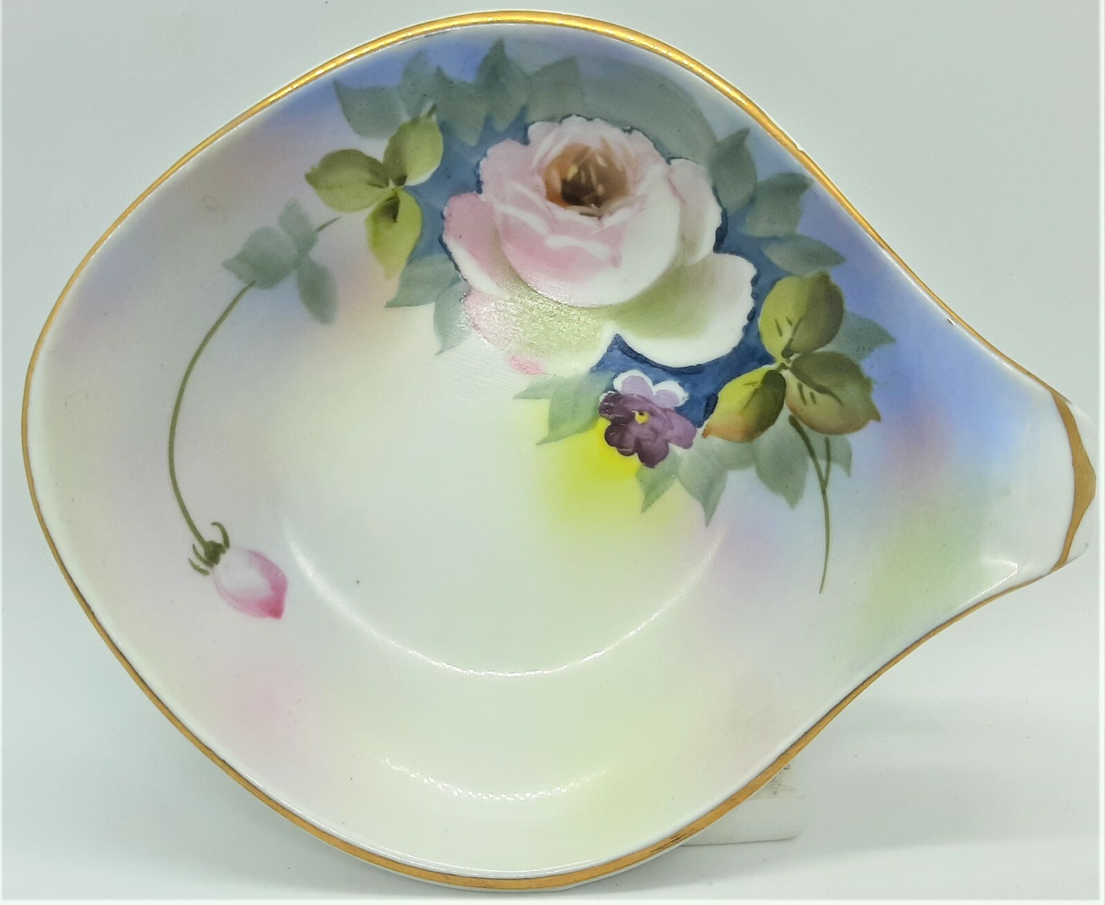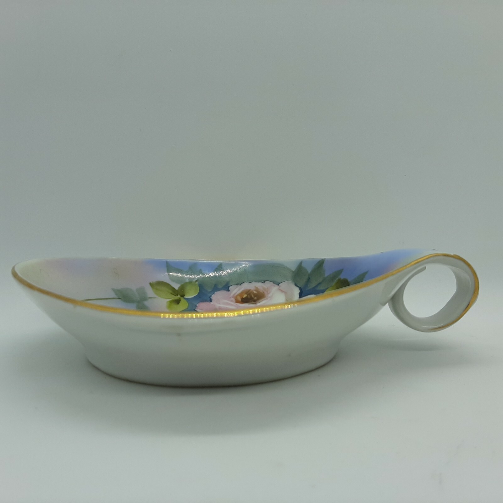 Noritake M Handpainted Candy/Nut Dish Gold Trim with Handle ~ Made in Japan