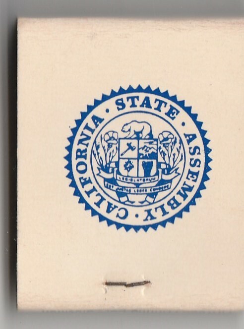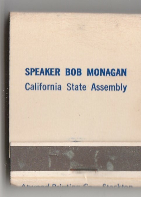 Vtg Strike on Matchbook Speaker Bob Monagan California State Assembly 12th Dist