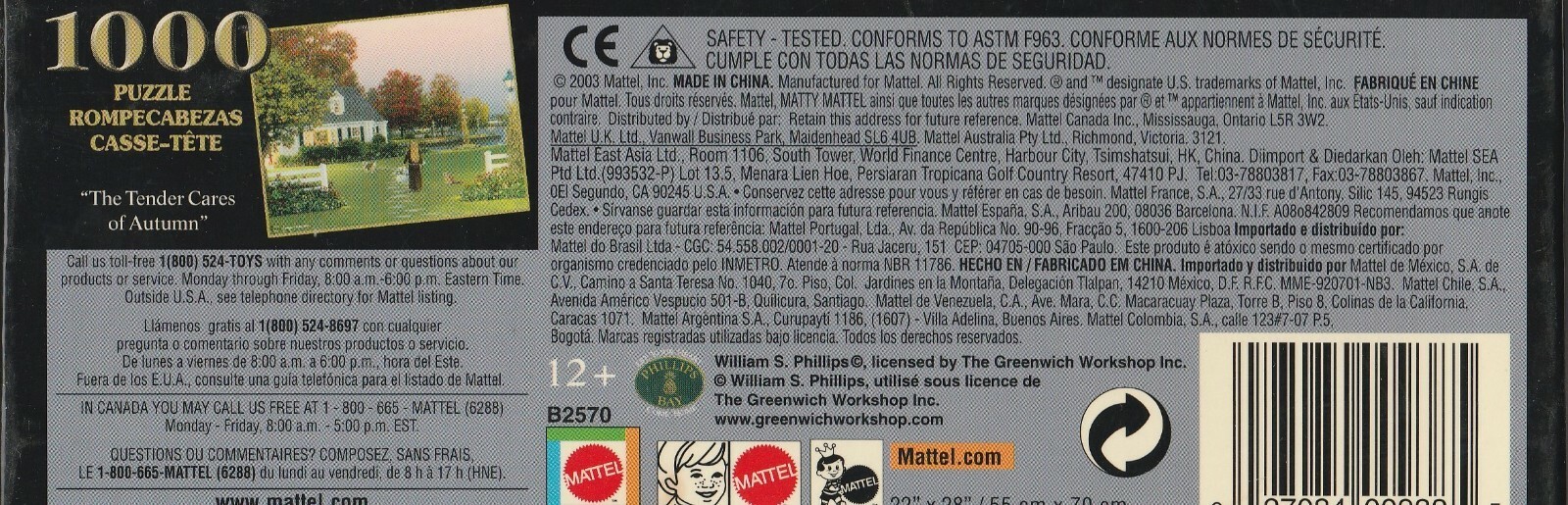 William Phillips 22" x 28" Jigsaw Puzzle by Mattel ~ 1000 pcs The Tender Cares