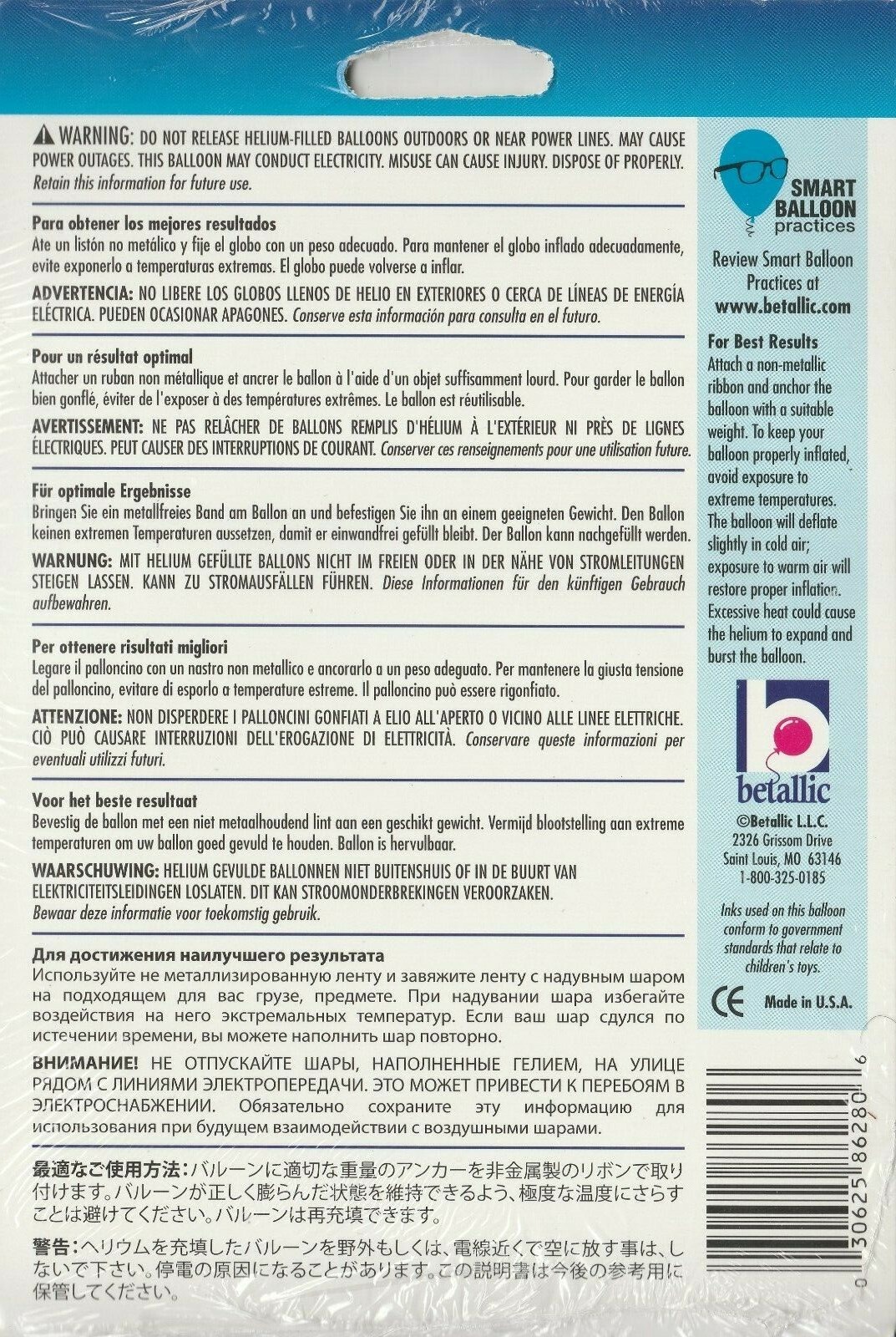 CHOKING HAZARD ? Children under 8 yrs. can choke or suffocate on uninflated or broken balloons. Adult supervision required. Keep uninflated balloons from children. Discard broken balloons at once.