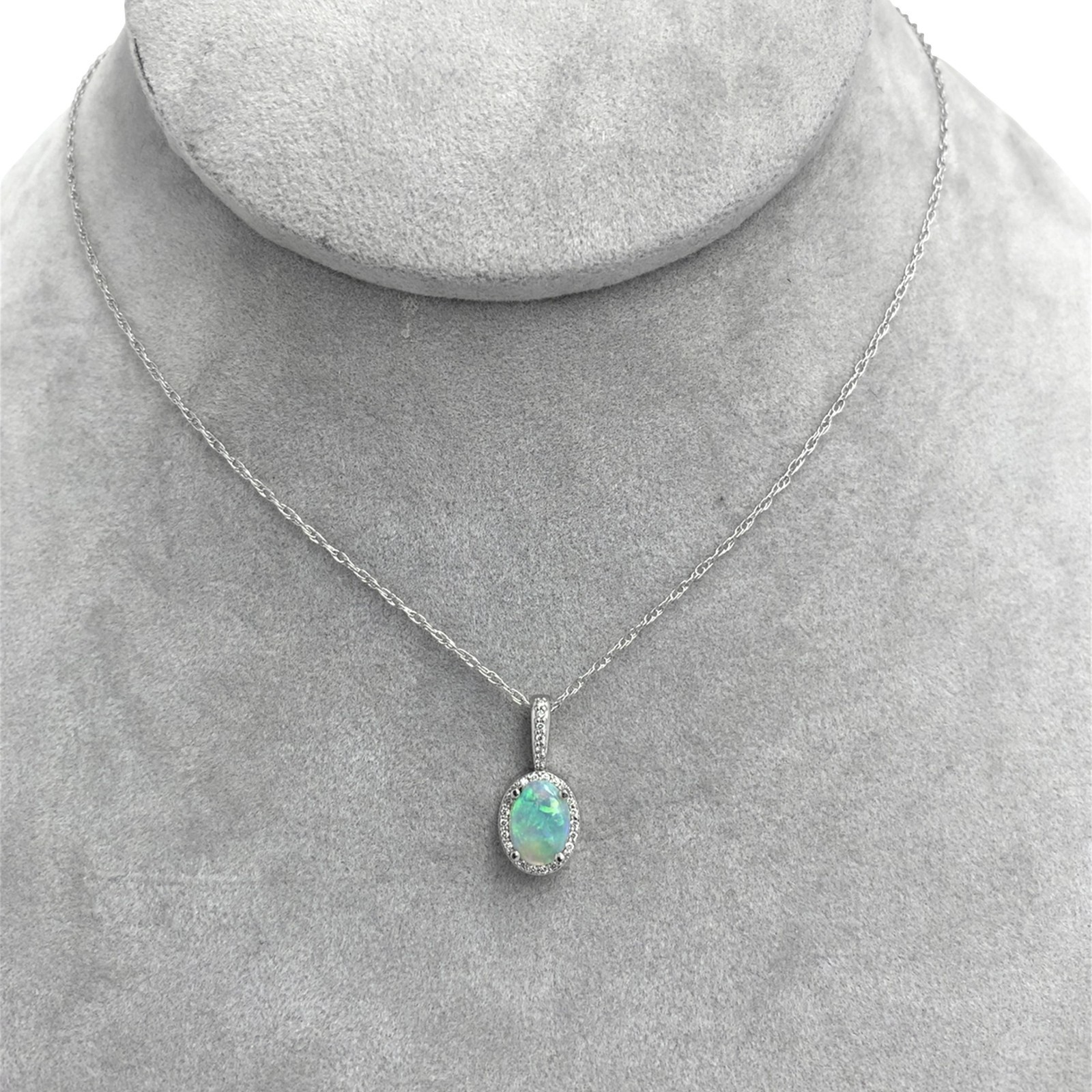 Platinum Oval Australian .60ct Genuine Opal and Diamond Halo Pendant (#J7426)