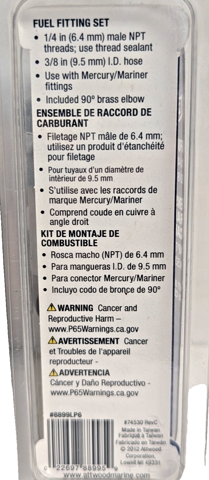 Attwood 8889LP6 Acetal 3/8-Inch Barb Fuel Hose Female Tank Fitting NEW