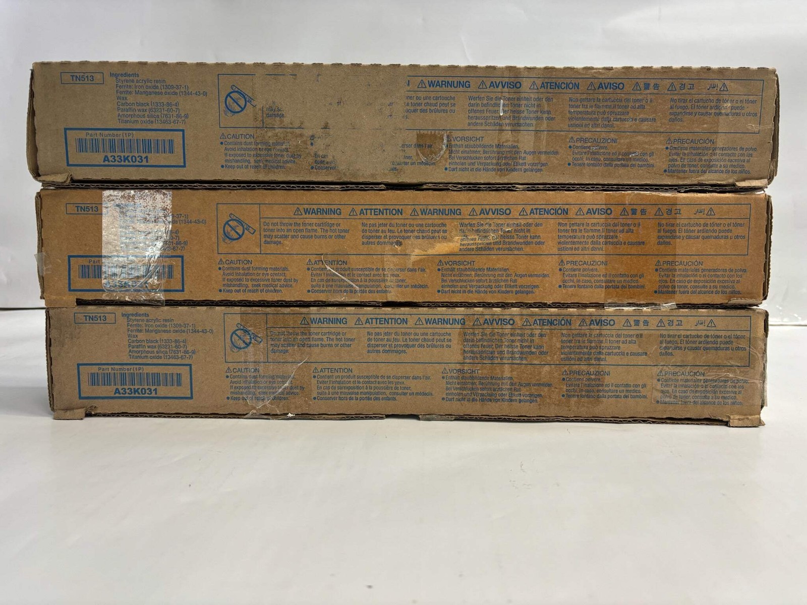3 Cosmetic Genuine Konica Minolta BH 454e, 554e Black Toners (TN513, A33K031)