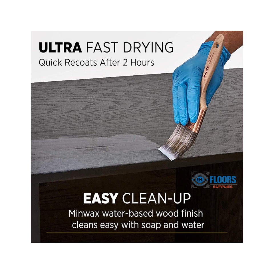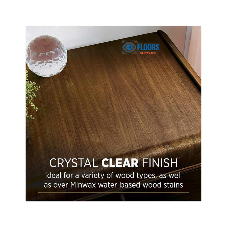Minwax Polycrylic Protective Finish is a crystal clear, ultra fast-drying protective topcoat Protects and adds beauty to interior wood surfaces including woodwork, furniture, doors and cabinets Ideal for use over light woods like maple, ash and birch as well as over Minwax Water Based Wood Stains - Not recommended for floors Can be used on both finished and unfinished wood Easy application with a high-quality synthetic bristle brush Cleans up easily with warm water Covarege Area - 25 SQFT