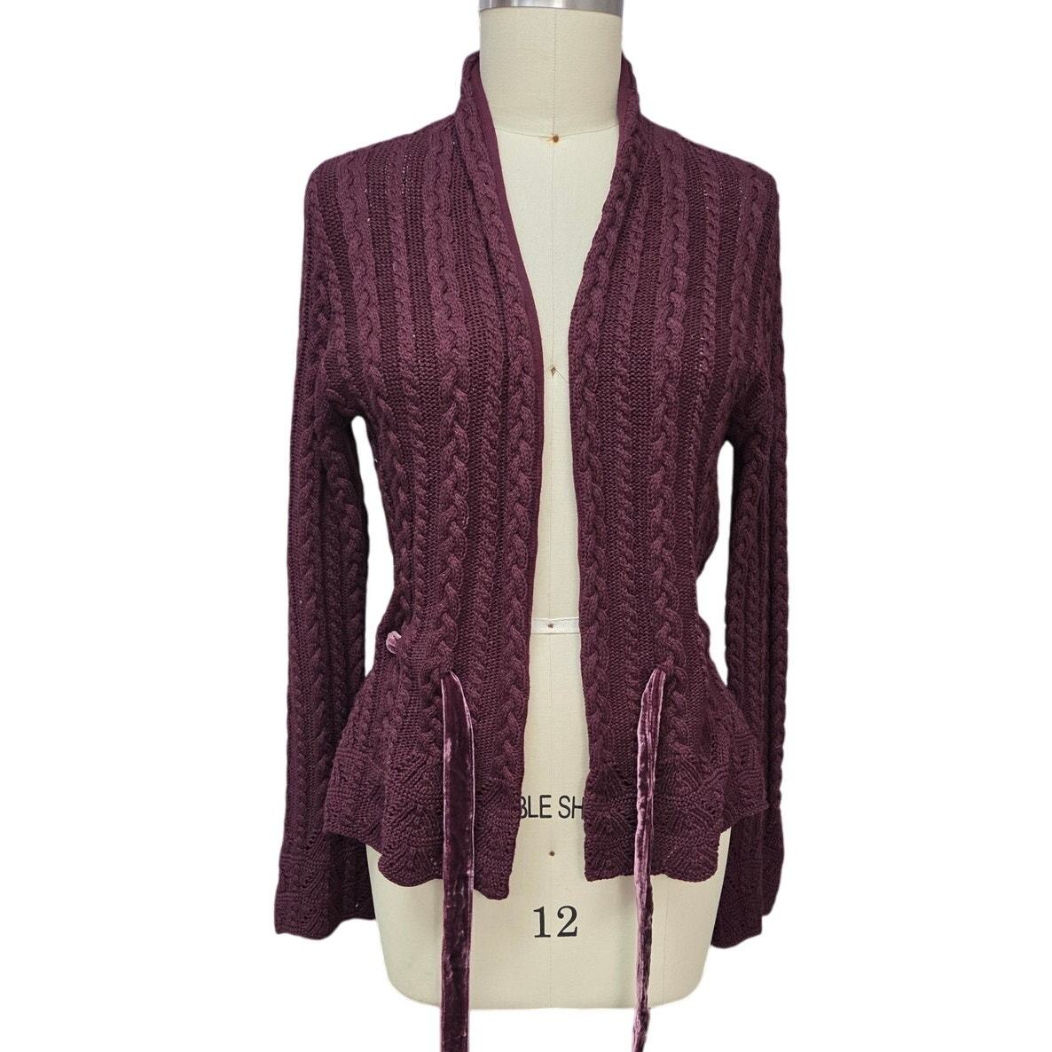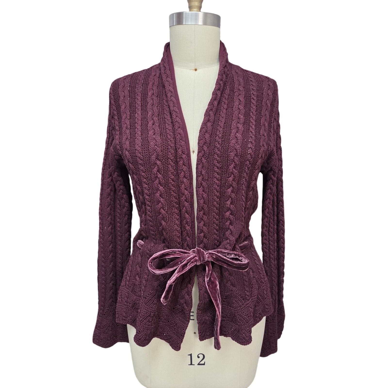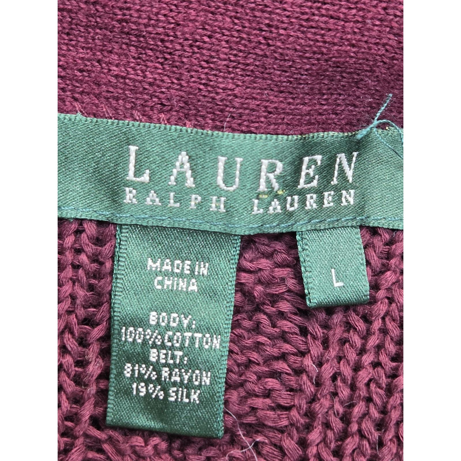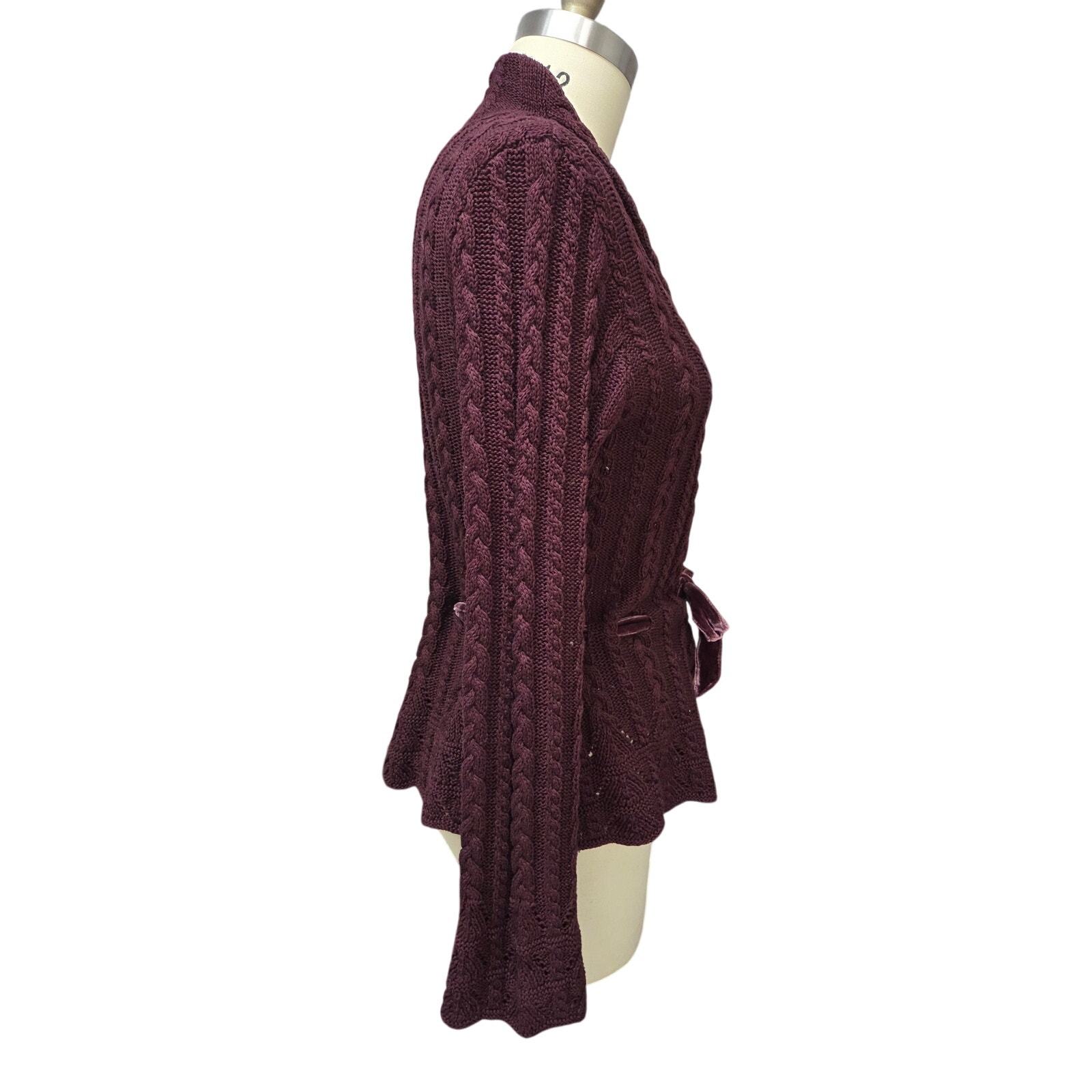 VTG 2000s Lauren Ralph Lauren Wine Cotton Cable Knit Cardigan Velvet Belt L