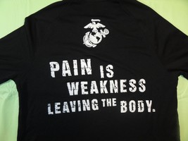 DISCONTINUED USMC MARINE CORPS PAIN IS WEAKNESS LEAVING THE BODY BLACK SHIRT M