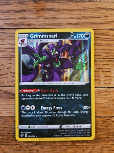 Pokemon TCG Rebel Clash Card | Grimmsnarl 125/192 Rare Holo