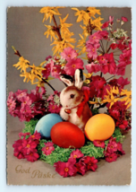 Happy Easter God Paske Rabbit Eggs Spring Flowers Postcard Posted