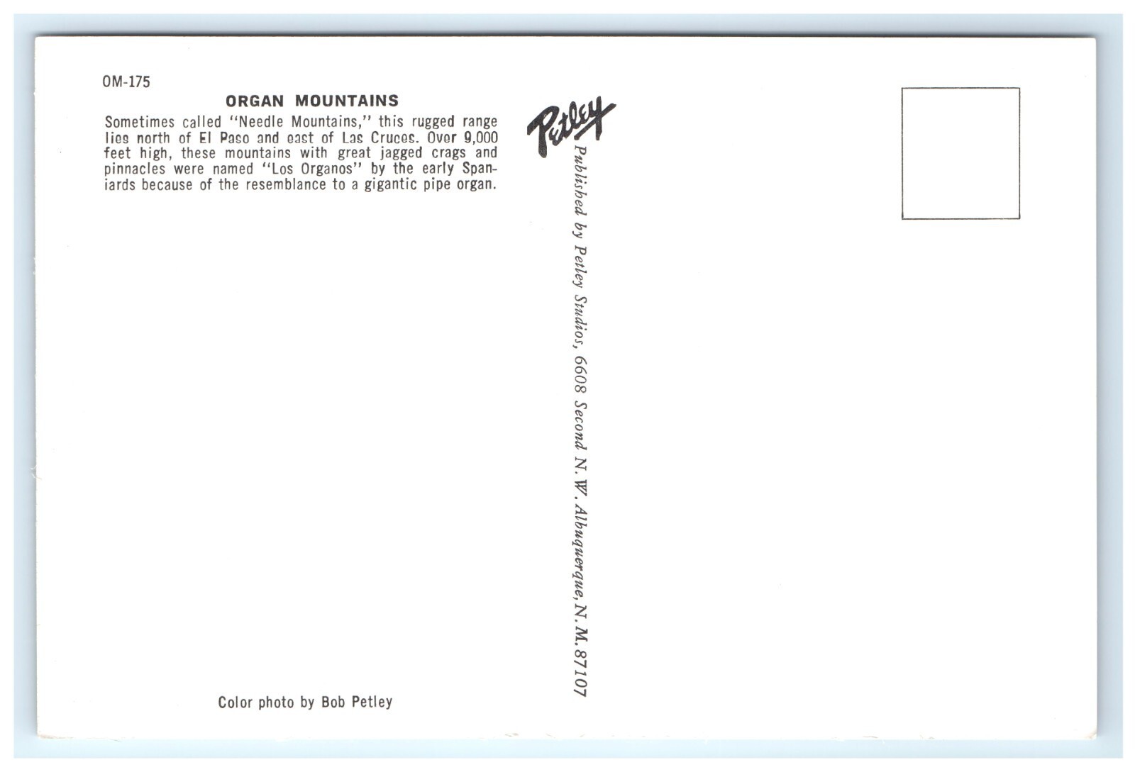 Organ Mountains Neddle Mountains El Paso TX Postcard