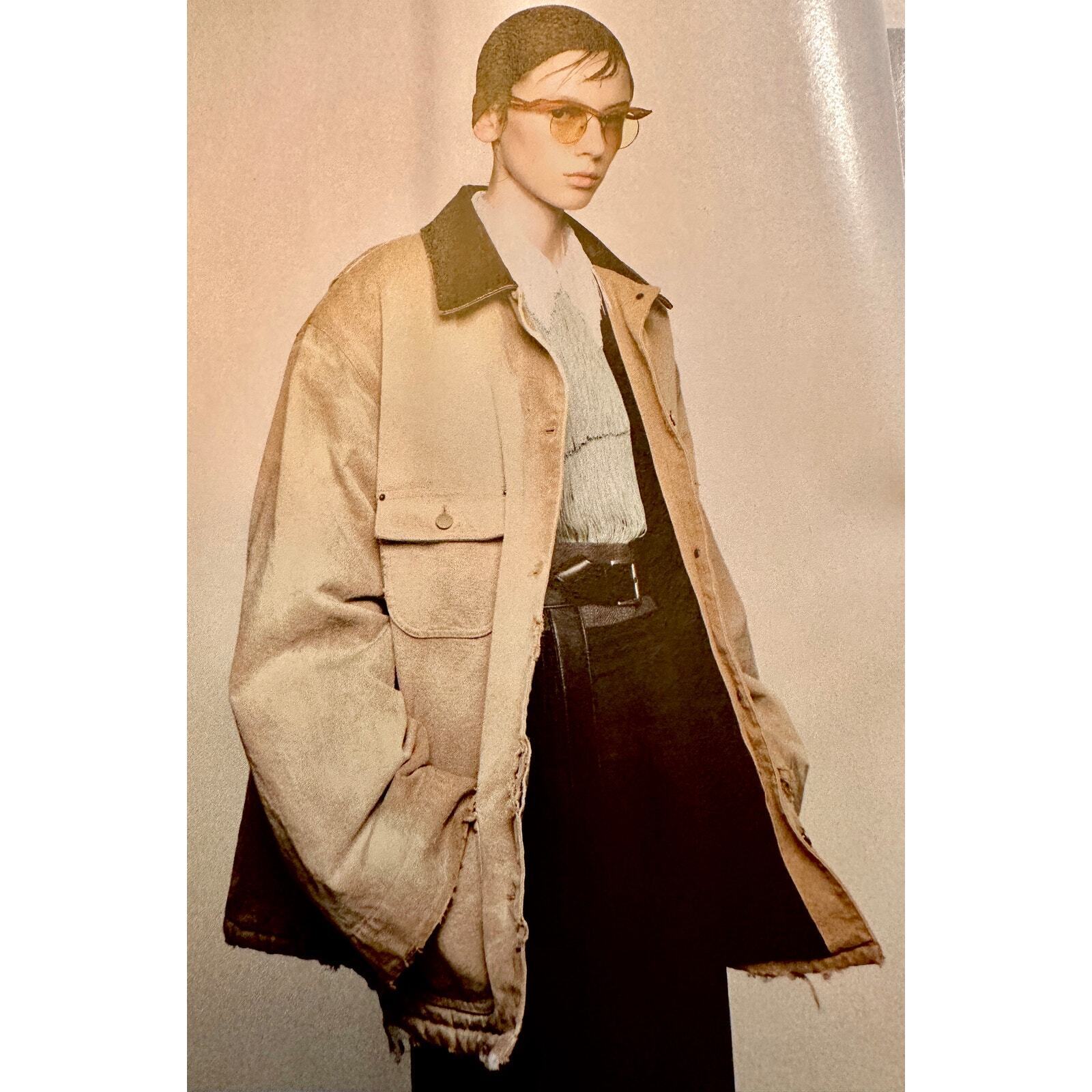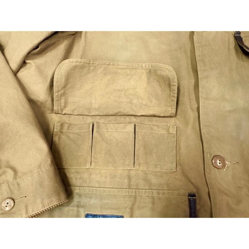 This one has unique leather buckle straps on the pockets and leather trim I did not find on any other coat like this. It is in excellent condition and has duck pockets and shell pockets. It has extra buttons sewn inside still. It is a heavy canvas. The buttons are old style, giving it an earlier, say, 40s-50s look.
