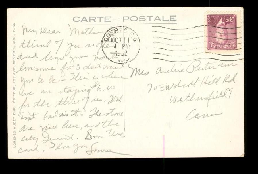 Vintage Postcard Old Mill Lodge Motel Bungalow Sainte-Monique-des-Saules Quebec - 1952 cancel.
