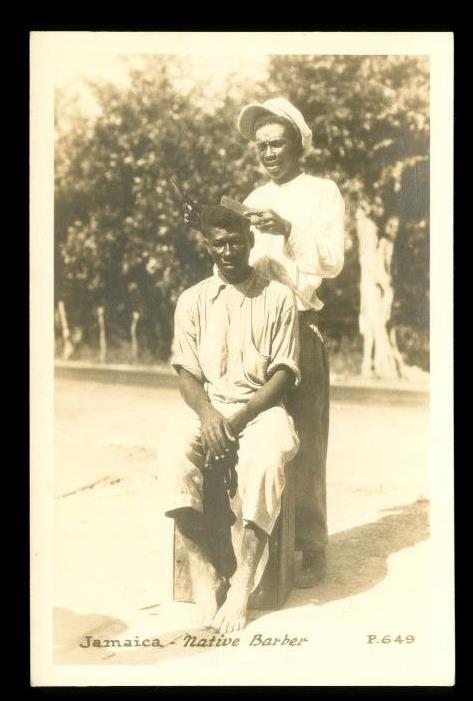 Vintage RPPC Real Photo Postcard Jamaica Native Barber Canadian Pacific Cruise