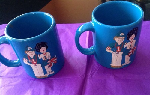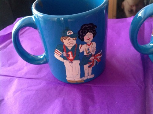 These vintage Waechtersbach mugs are in good condition aside from some signs of wear on the images and imperceptible chips (as seen in the photos). These mugs still have a lot of life left in them and their unique look would look good for anyone that is interested in Waechtersbach, the Miami Dolphins or unique mugs. Makes a great gift!