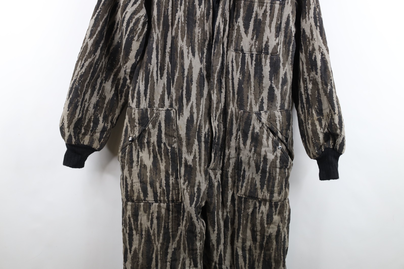 Vtg 70s 80s Streetwear Mens Medium Faded Quilted Camouflage Coveralls Bibs USA