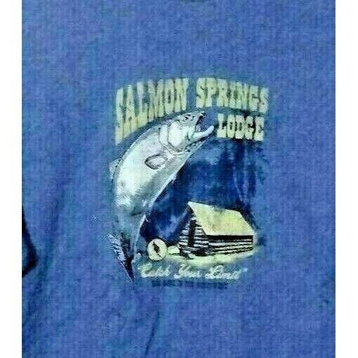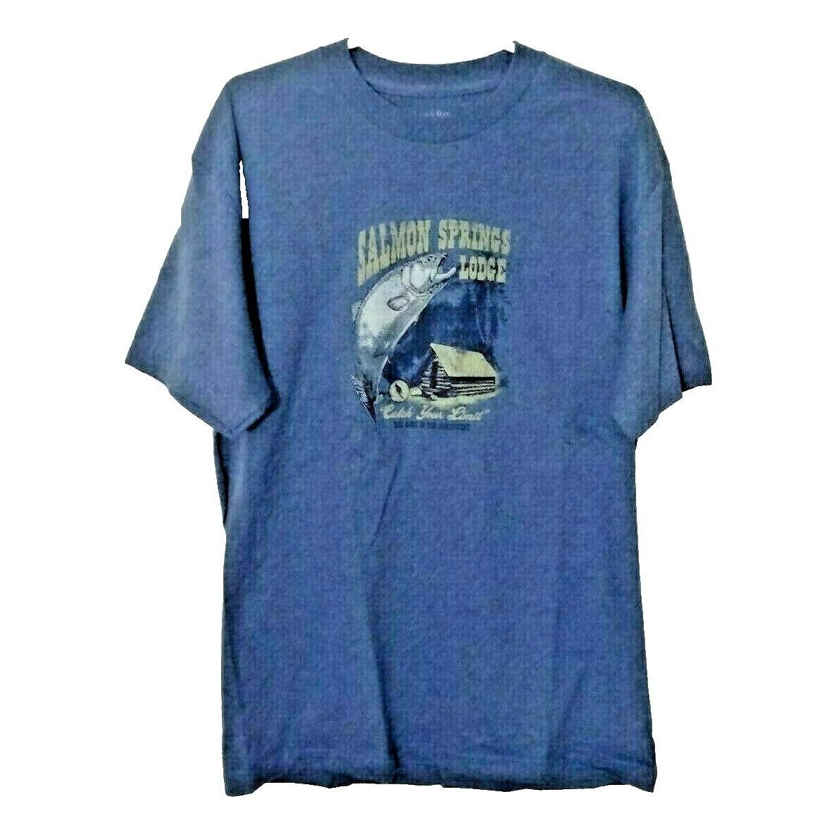 St Johns Bay Salmon Springs Lodge Men's Graphic T-Shirt Sz Lg Navy Blue Fishing