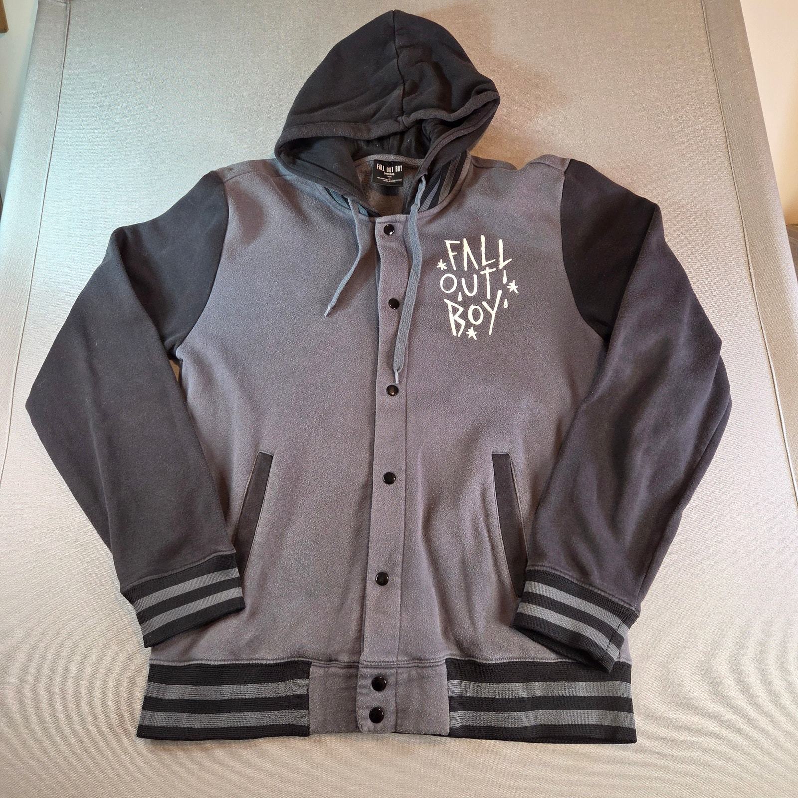 Fall Out Boy Band Varsity Hoodie Jacket Gray Black Size L