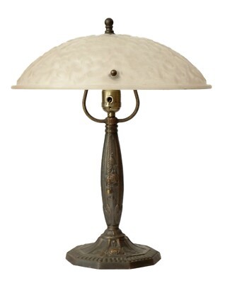 Art Deco Table Lamp Antique Signed Glass Brass Lamp Design Unique Banker