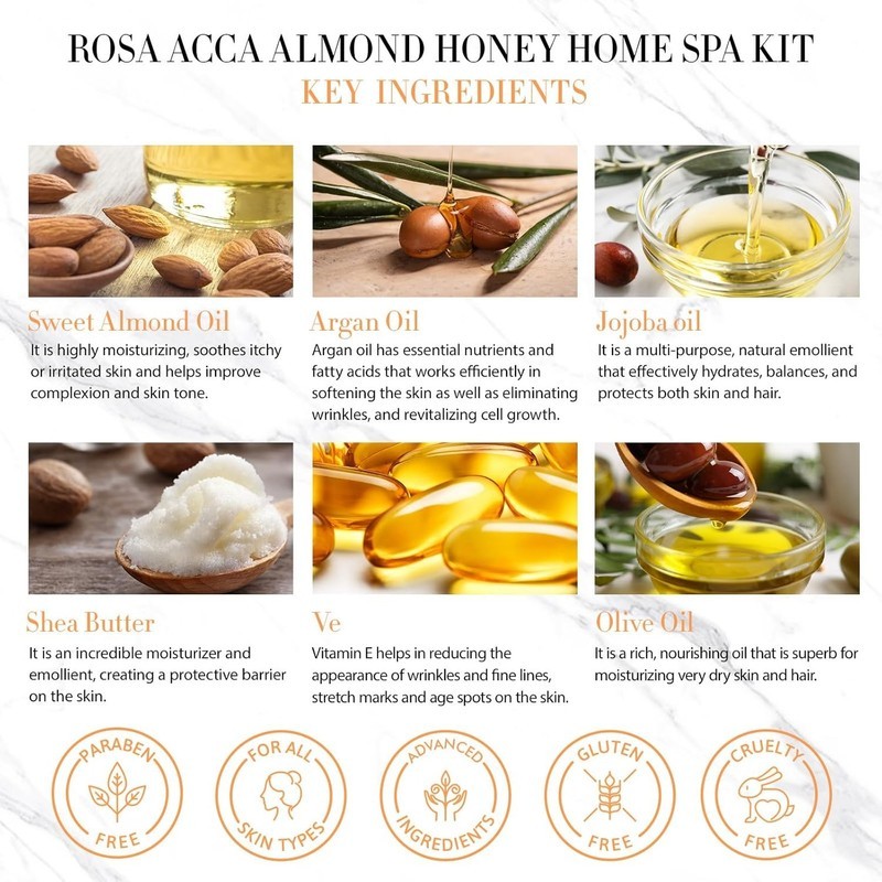Rosa Acca Honey Almond Luxury Spa Gift Set ? 20-Piece Bath Body Care Basket