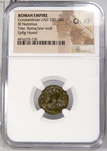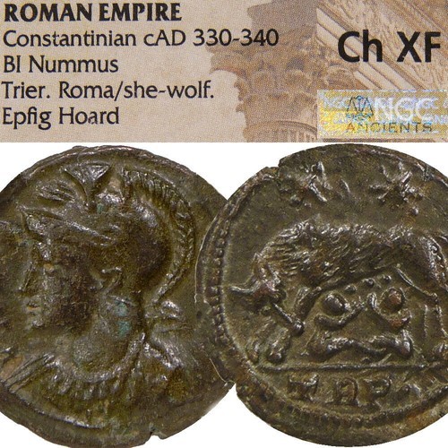 SHE WOLF w/ Twins. Epfig Hoard RARE Unlisted RIC Choice XF Constantine the Great