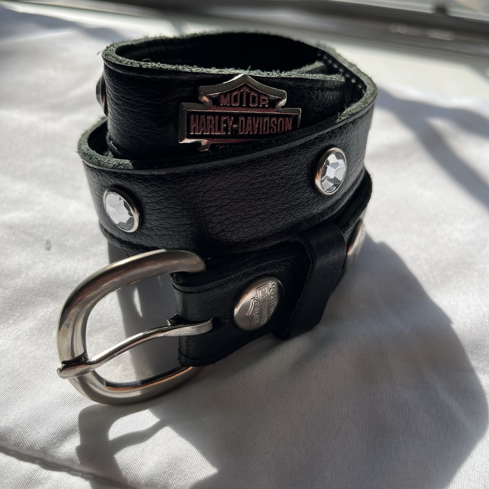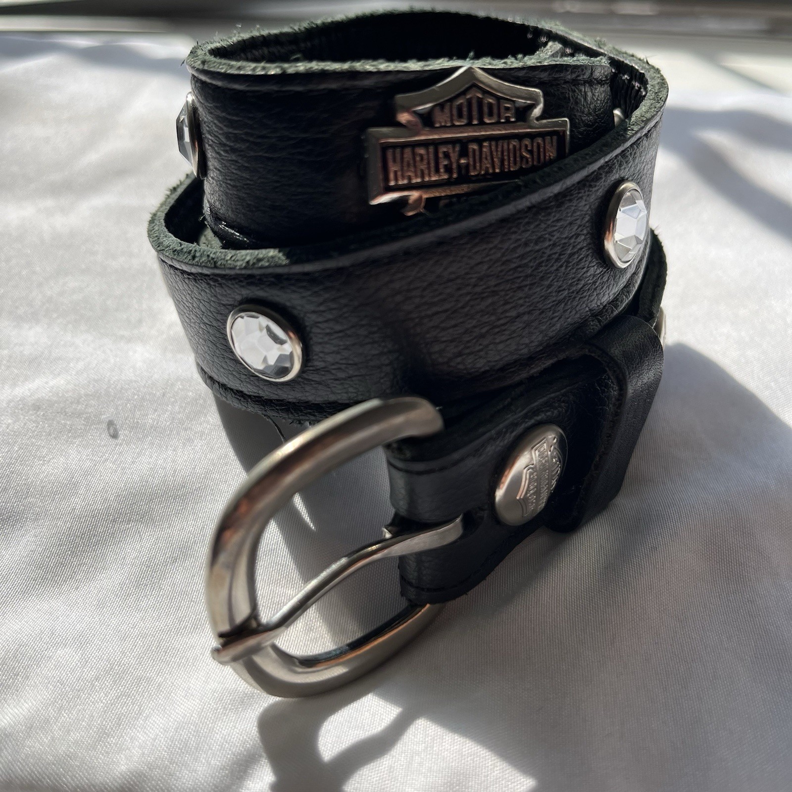 ✨Harley Davidson Women's Black Pebbled Leather Belt 28” Rhinestones 1 In. Wide