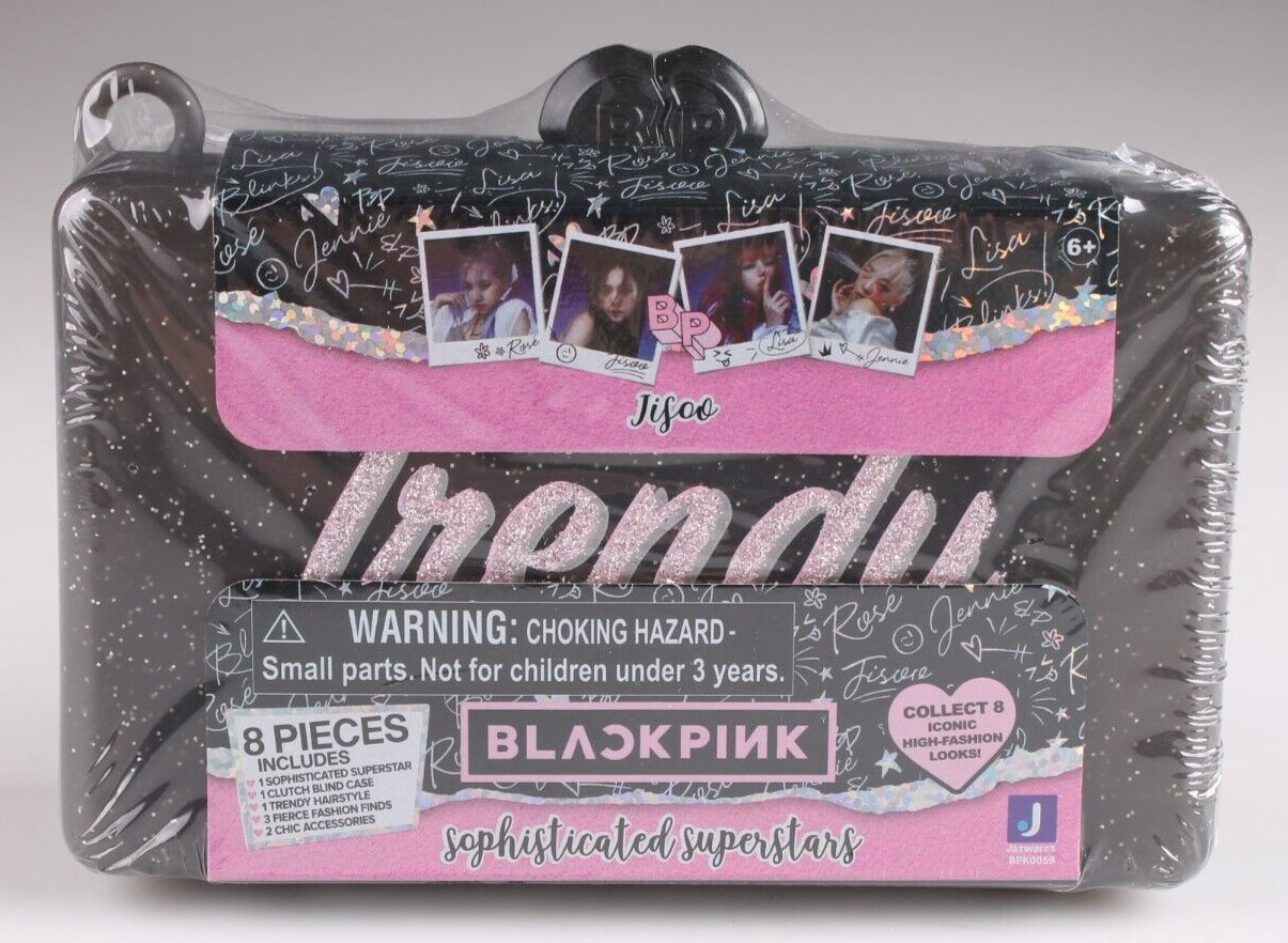 This is for a brand new Sealed Black Pink Sophisticated Superstars Clutch By Jazwares Jisoo Trendy 8 Pieces SEALED includes: JISOO 1 of 4 Mystery K-Pop 3-inch Figure 3 Interchangeable Accessories 1 Interchangeable Hairstyle 1 Keychain 1 Charm 1 Clutch Case Looking for the other K-Pop Figures? Check my other listings and combine them in 1 shipment!