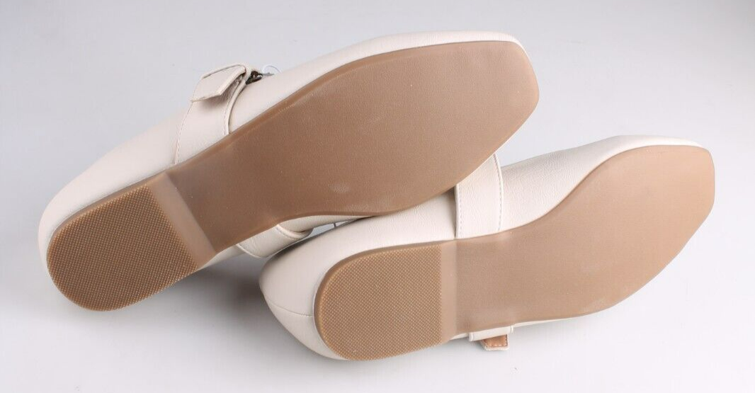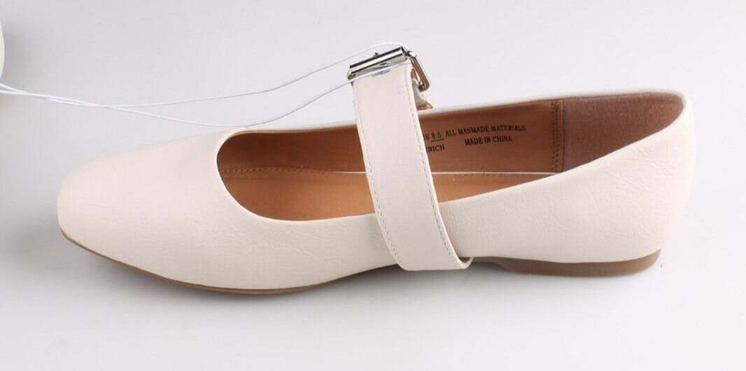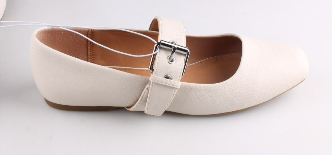 Fabriques avec des tiges synthetiques et une composition de materiaux fabriques a un homme, ces appartements offrent une durabilite et une teinte ivoire elegante qui est polyvalente pour toute garde-robe de printemps.