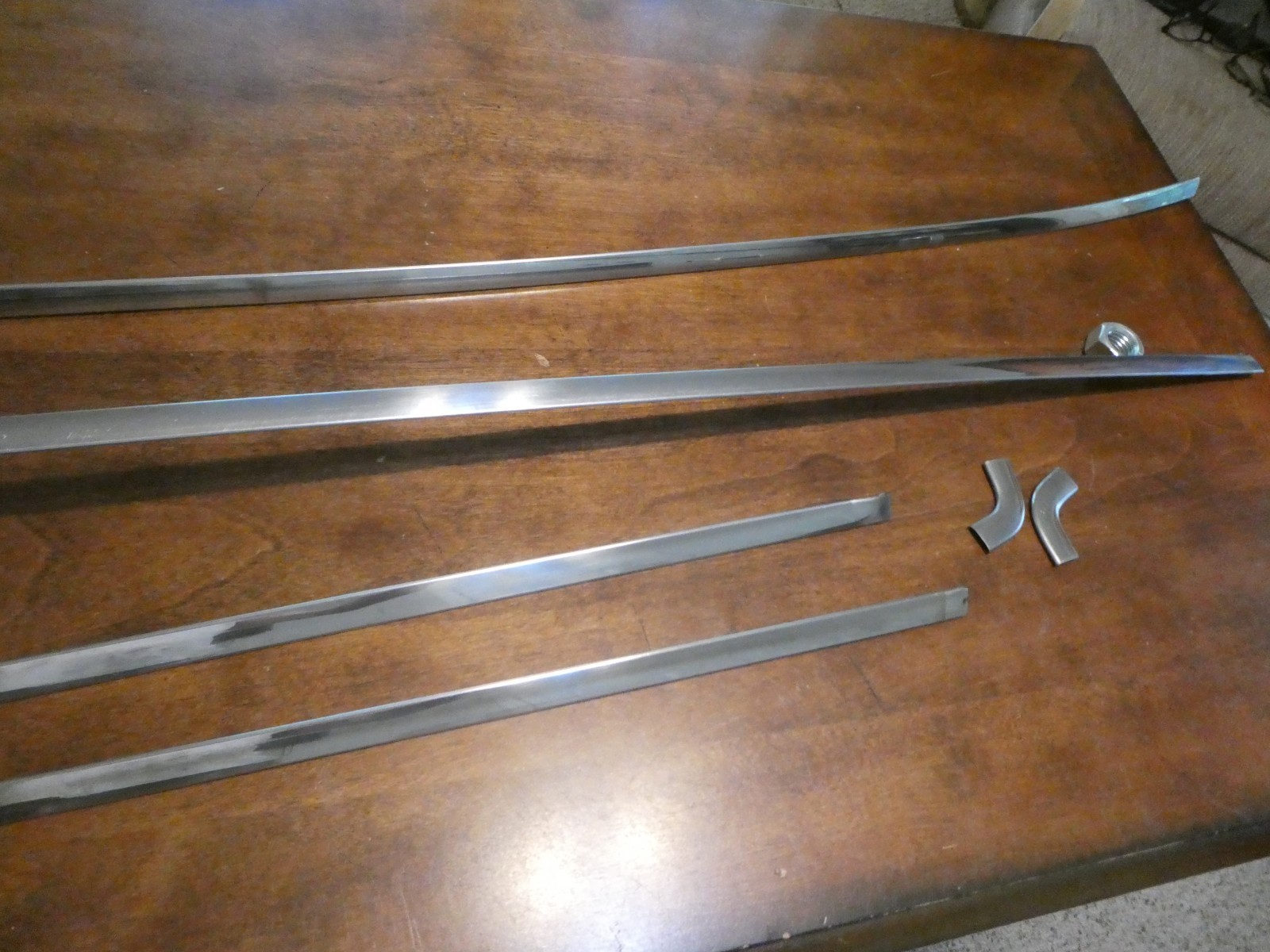 Nice OEM 1962 -1965 Ford Fairlane 2 or 4 door Sedan Exterior Rear Windshield Garnish Molding 6-piece set in very good condition. Straight with no dents, dings or bends.