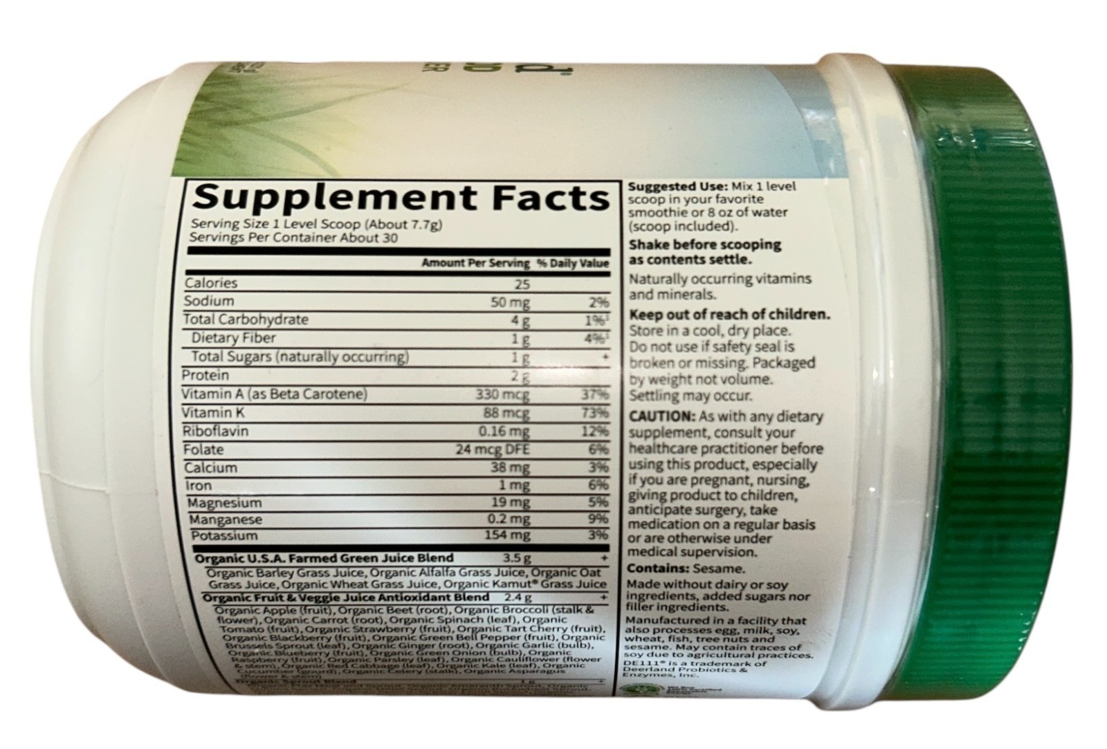 Raw Organic Perfect Food is the only Raw Vegan Green Super Food that is dual certified, meaning that it is both Certified USDA Organic and Non-GMO Project Verified. It is packed with the energizing power of 40 nutrient-dense, raw, organically grown greens, sprouts and vegetable juices for the raw energy you need every day.? Raw Organic Perfect Food grasses are juiced and cold-temperature dried immediately at the farm within an hour of harvesting, locking in the concentrated nutrition everyone looks for in a greens supplement.
