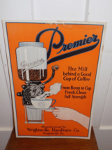 Vintage Premier Coffee Mill Wrightsville Hardware Co. Cardboard Sign