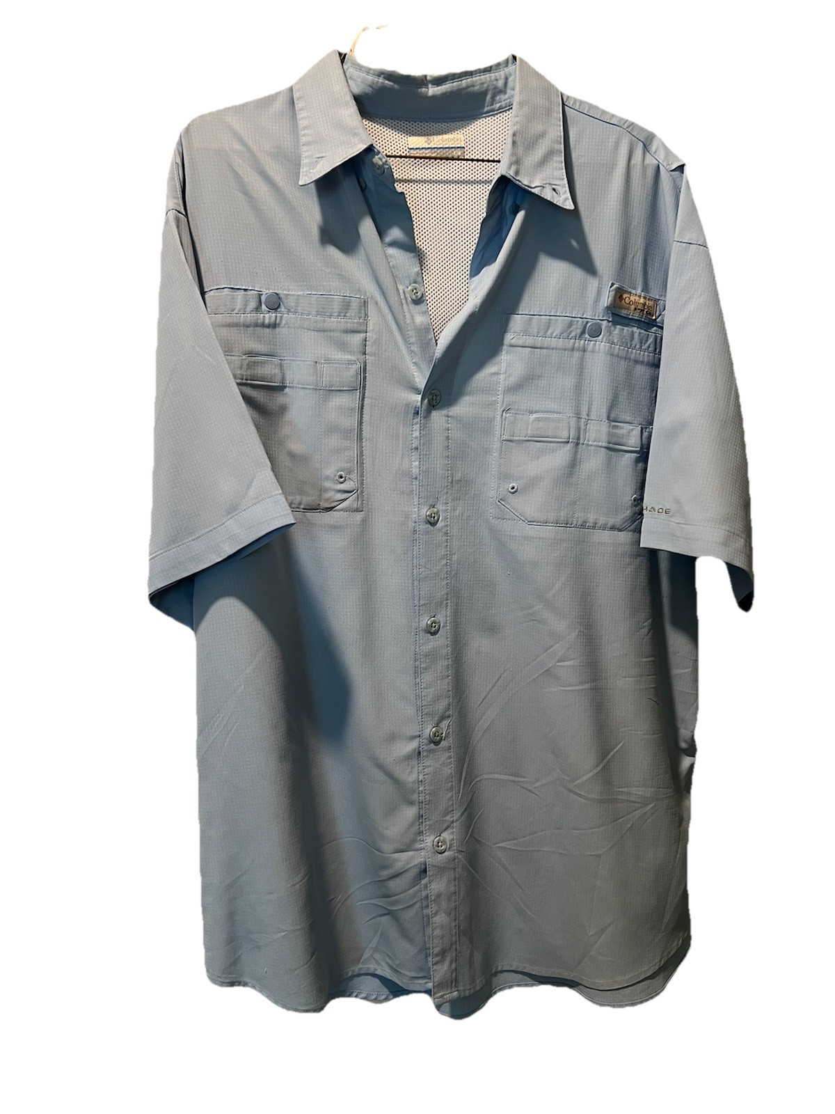 Columbia PFG Omni Shade Vented Fishing Shirt Blue Short Sleeves Menโs Large