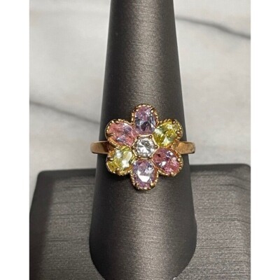 YELLOW GOLD AND MULTICOLORED CZ'S FLOWER RING SIZE 8.5 SKY