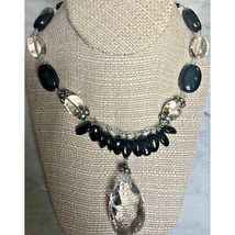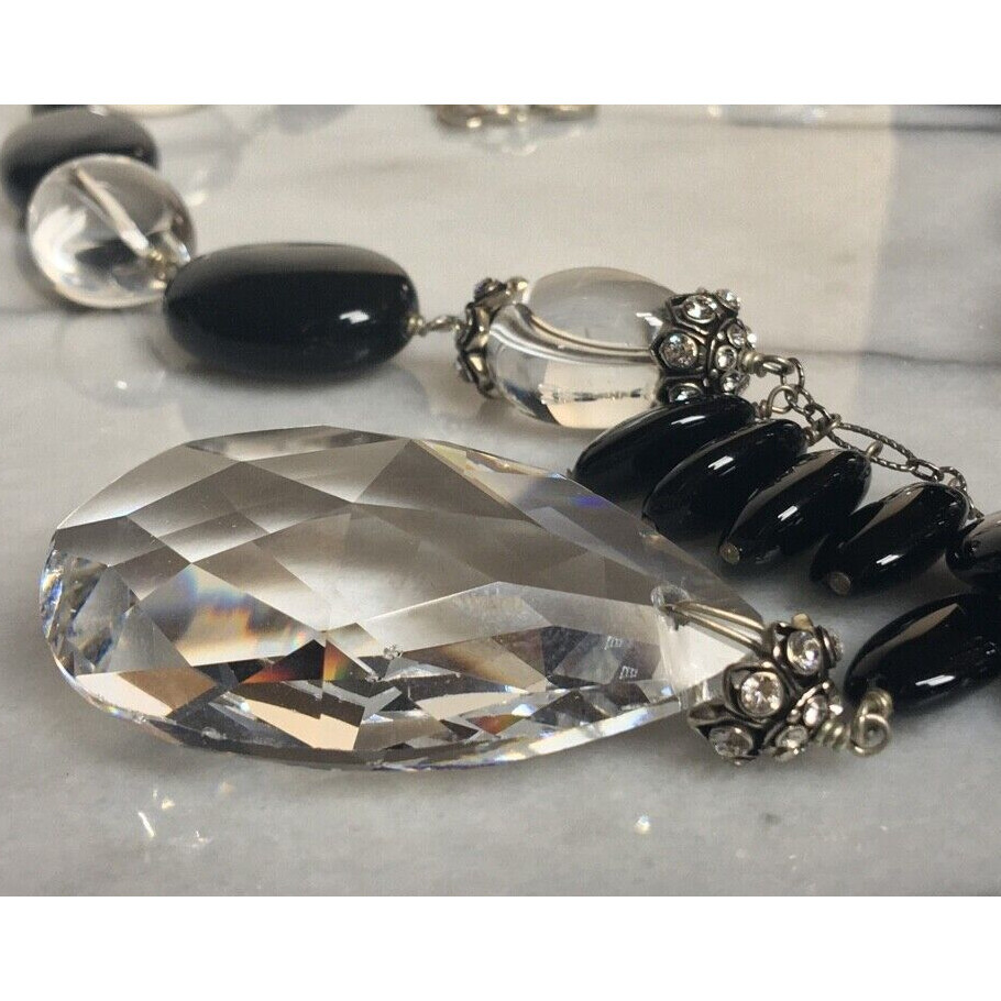 STUNNING STERLING SILVER BLACK ONYX,COLORLESS JADEITE ROCK QUARTZ NECKLACE,APPROX.19'' LONG.CONSTRUCTED OF HIGHLY POLISHED BEADS OF DIFFERENT SHAPES AND SIZES.THE BOTTOM PENDANT CONSISTS OF FACETED ROCK QUARTZ AND BLACK ONYX BEAN BEAD;LENGTH IS APPROX.3 1/2''.FREE SHIPPING in the USA.